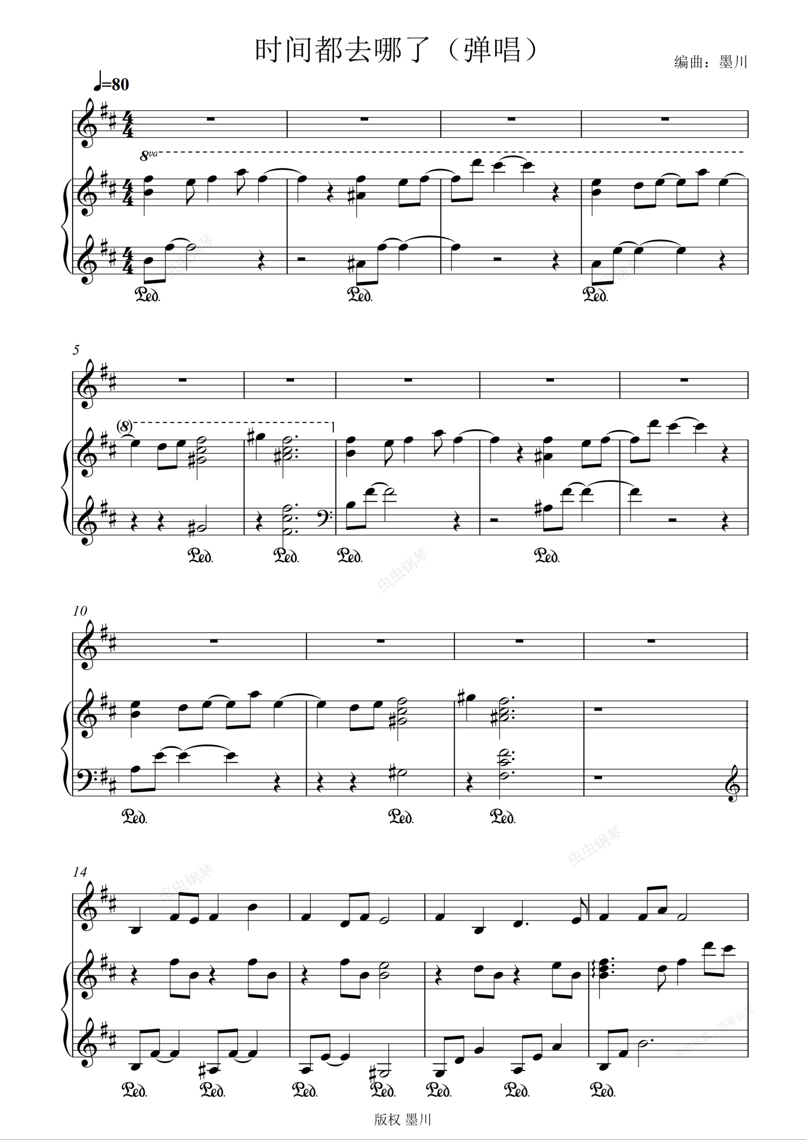 钢琴谱:王铮亮—时间都去哪了(弹唱)