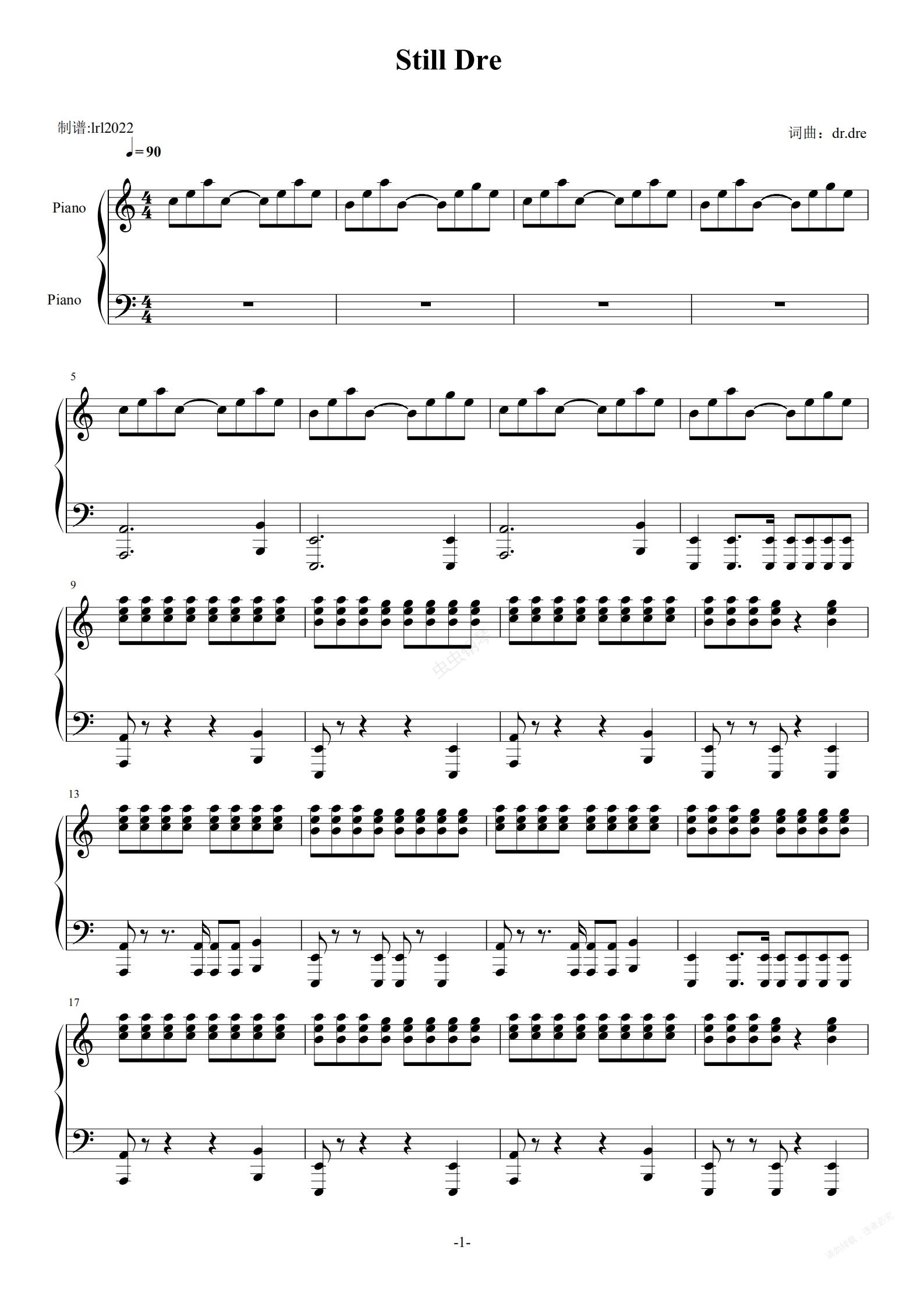 钢琴谱:Still DRE-钢琴谱-Dr. Dre-Still D.R.E