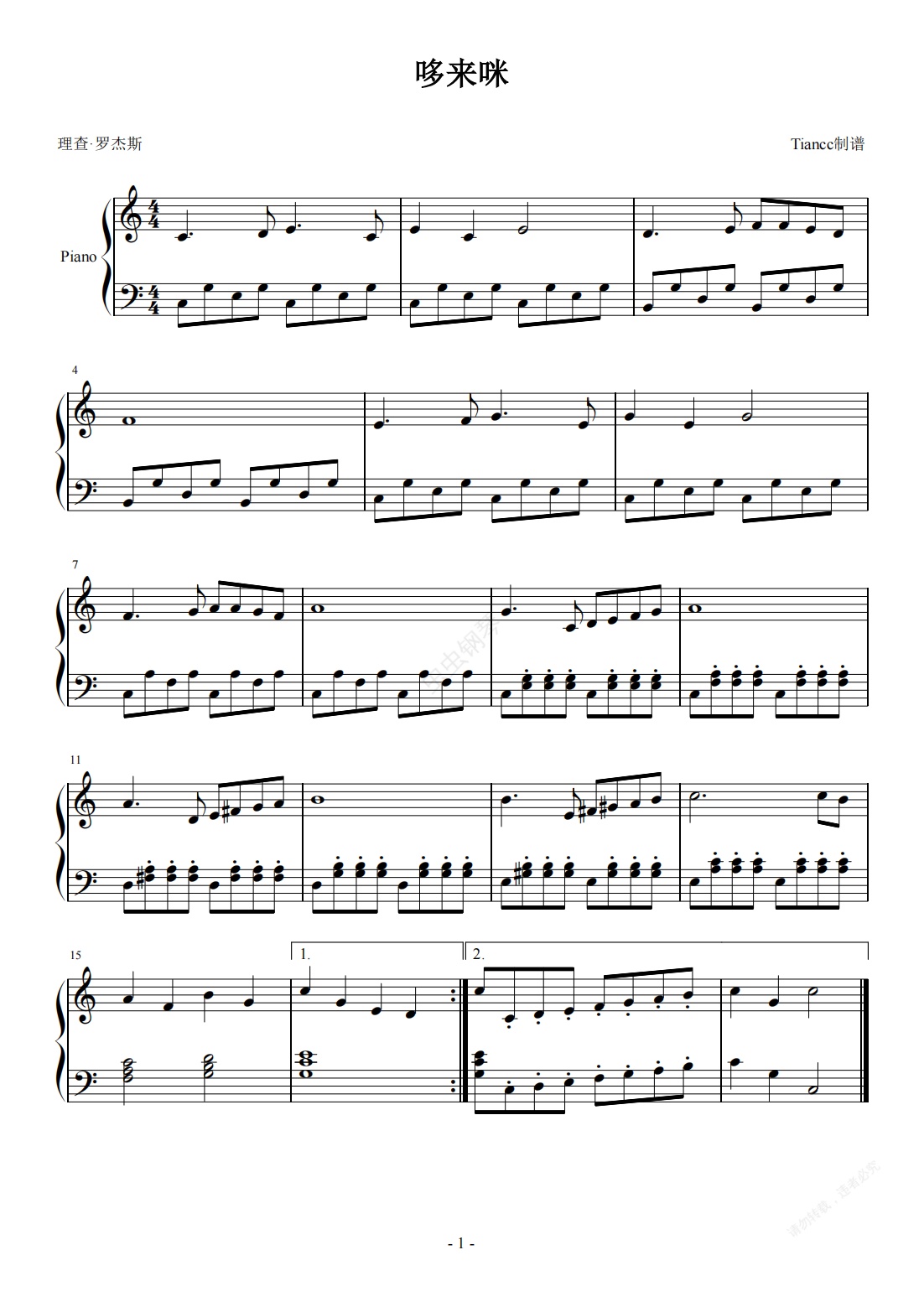 钢琴谱:《哆来咪》教学专用,小汤三难度