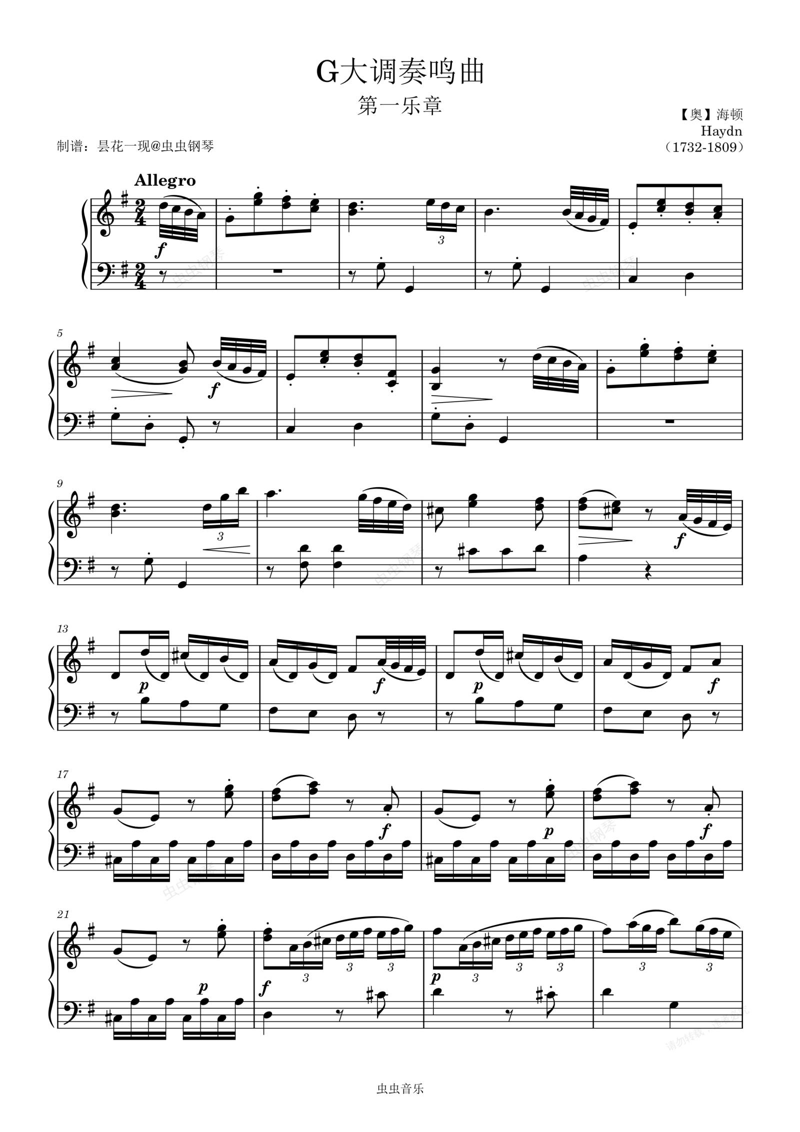 钢琴谱:G大调奏鸣曲第一乐章 海顿
