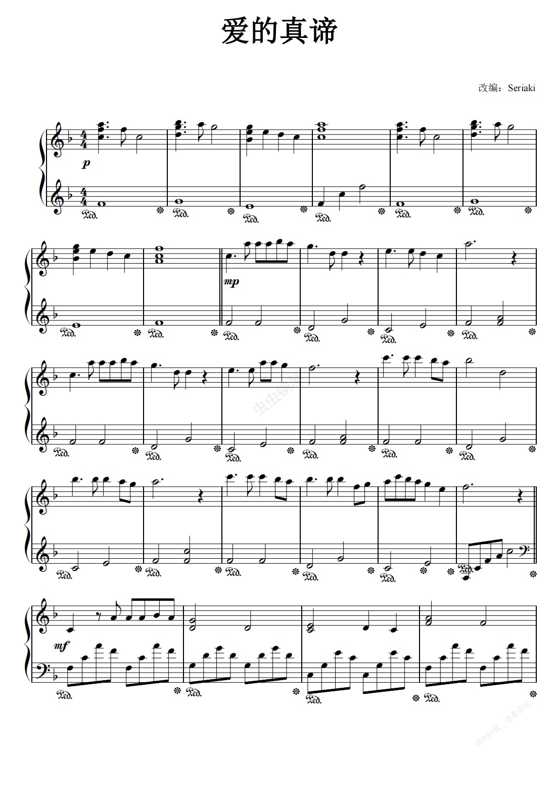 钢琴谱:爱的真谛-F大调钢琴变奏曲