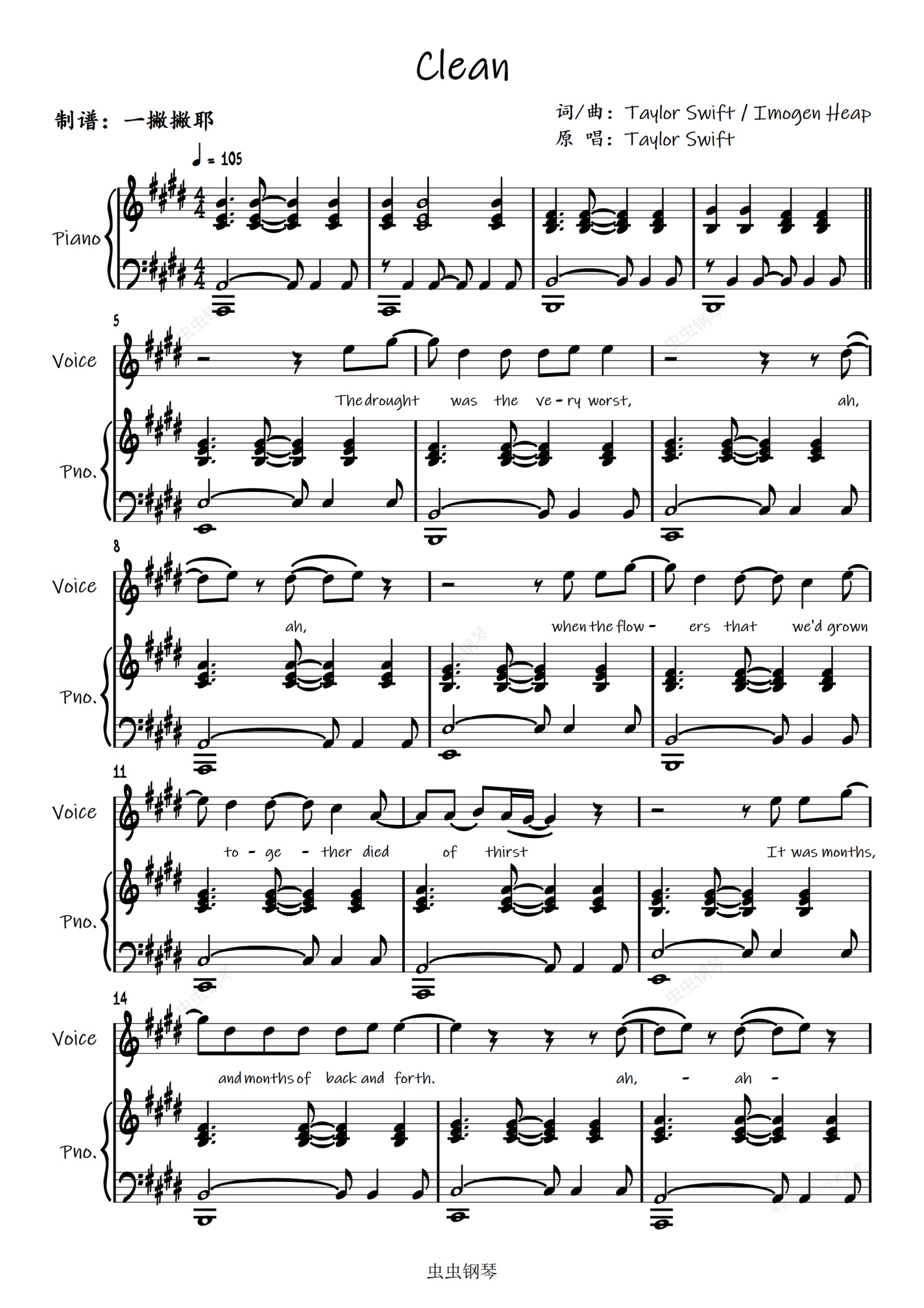 钢琴谱:Clean【完美弹唱谱】Taylor Swift 霉霉1989「一撇撇耶」