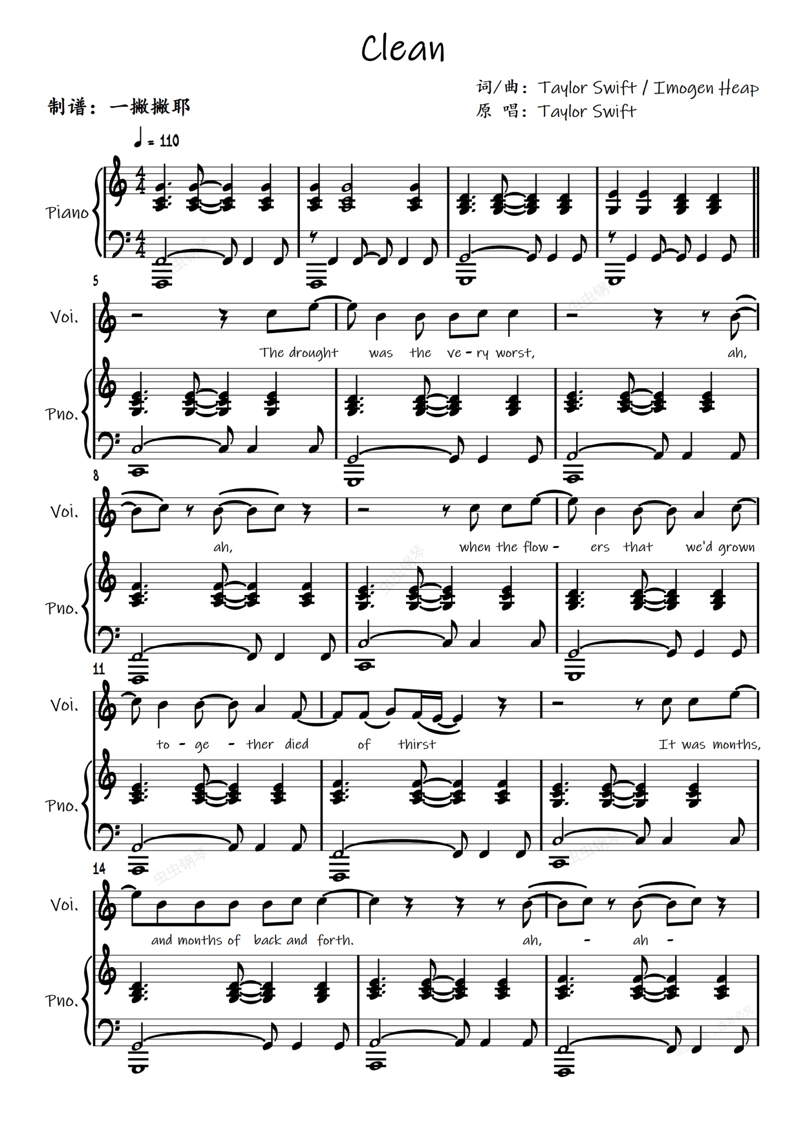 钢琴谱:Clean【霉霉演唱会版弹唱】Taylor Swift 泰勒·斯威夫特「一撇撇耶」