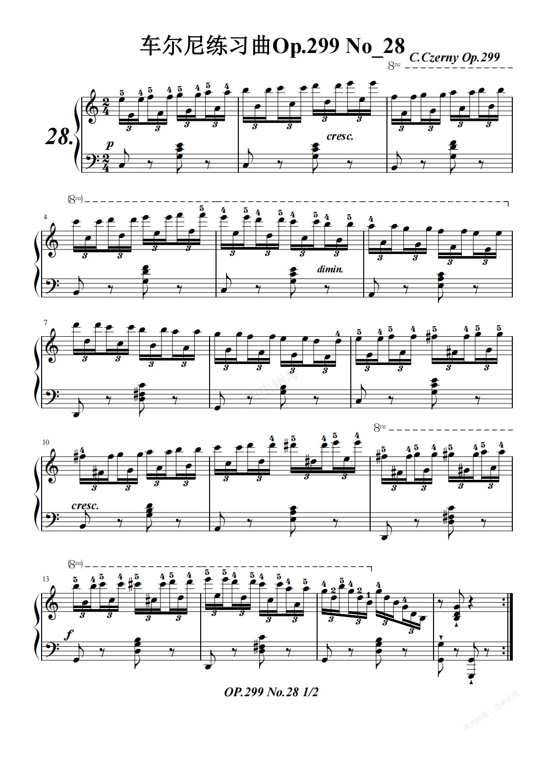 钢琴谱:车尔尼练习曲Op.299 No_28