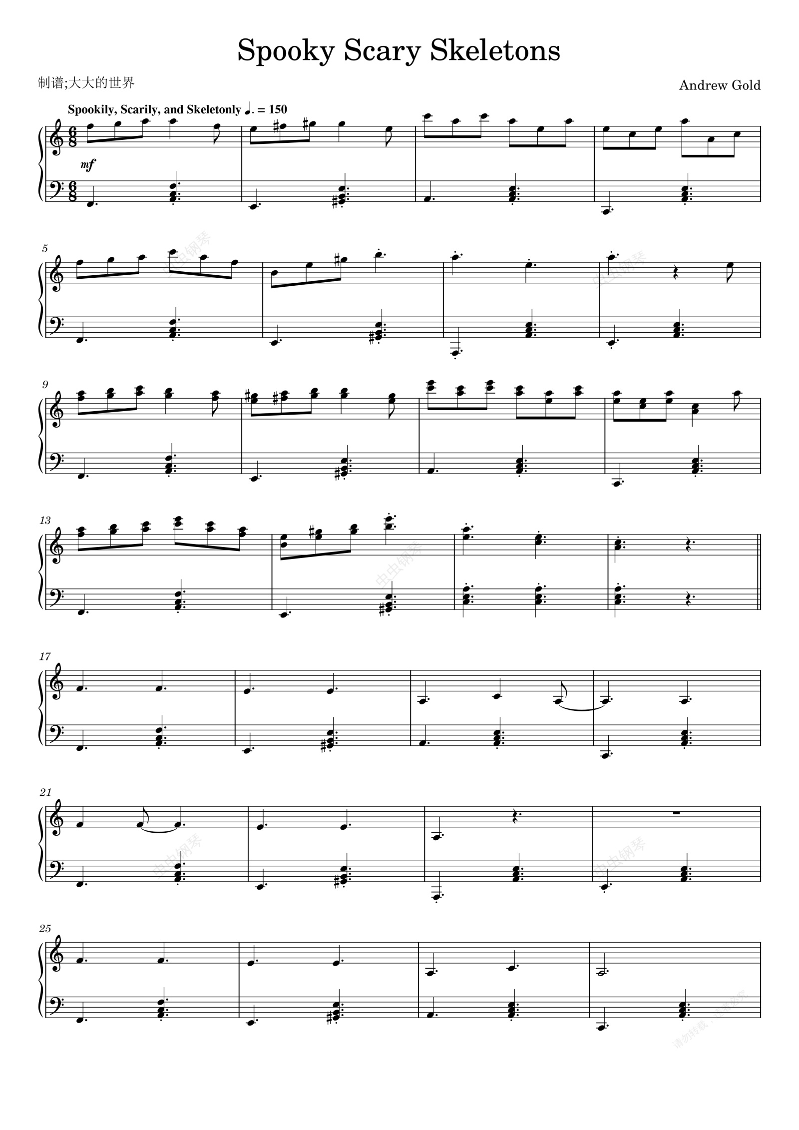 钢琴谱:Spooky Scary Skeletons钢琴谱-Andrew Gold(C调简易版)