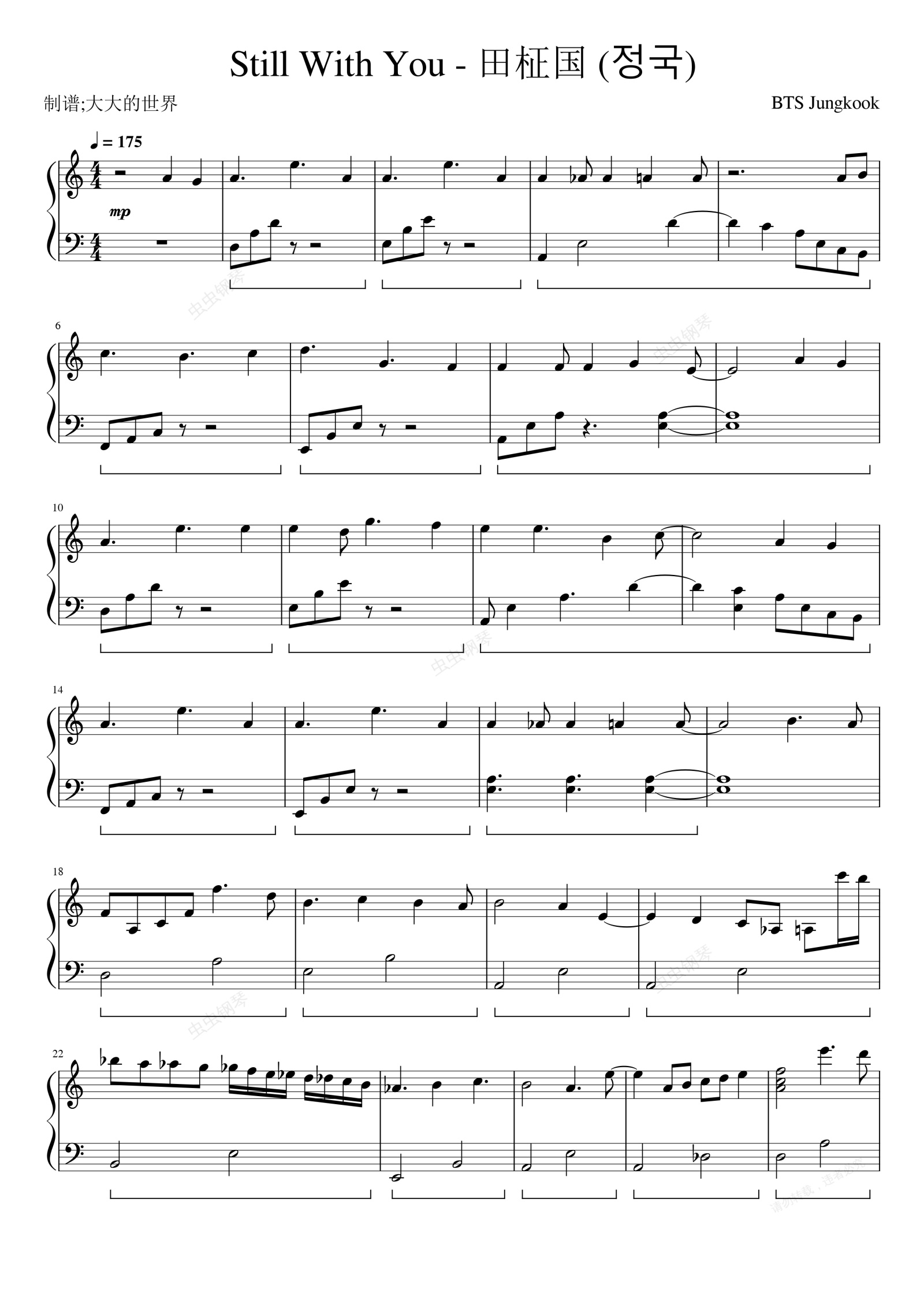 钢琴谱:Still With You钢琴谱 - 田柾国 (정국)