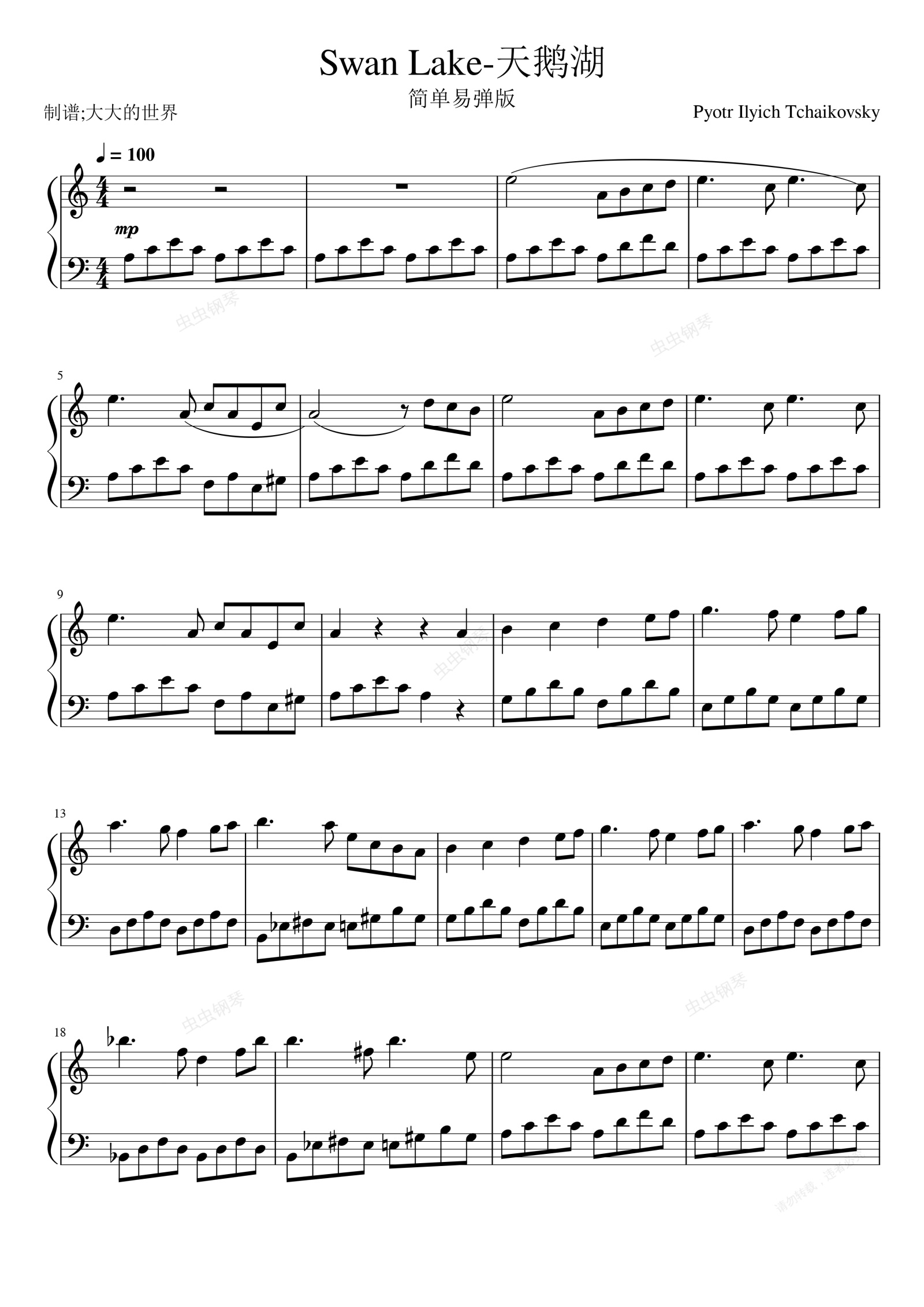 钢琴谱:Swan Lake-天鹅湖(简单易弹C调版)-柴可夫斯基