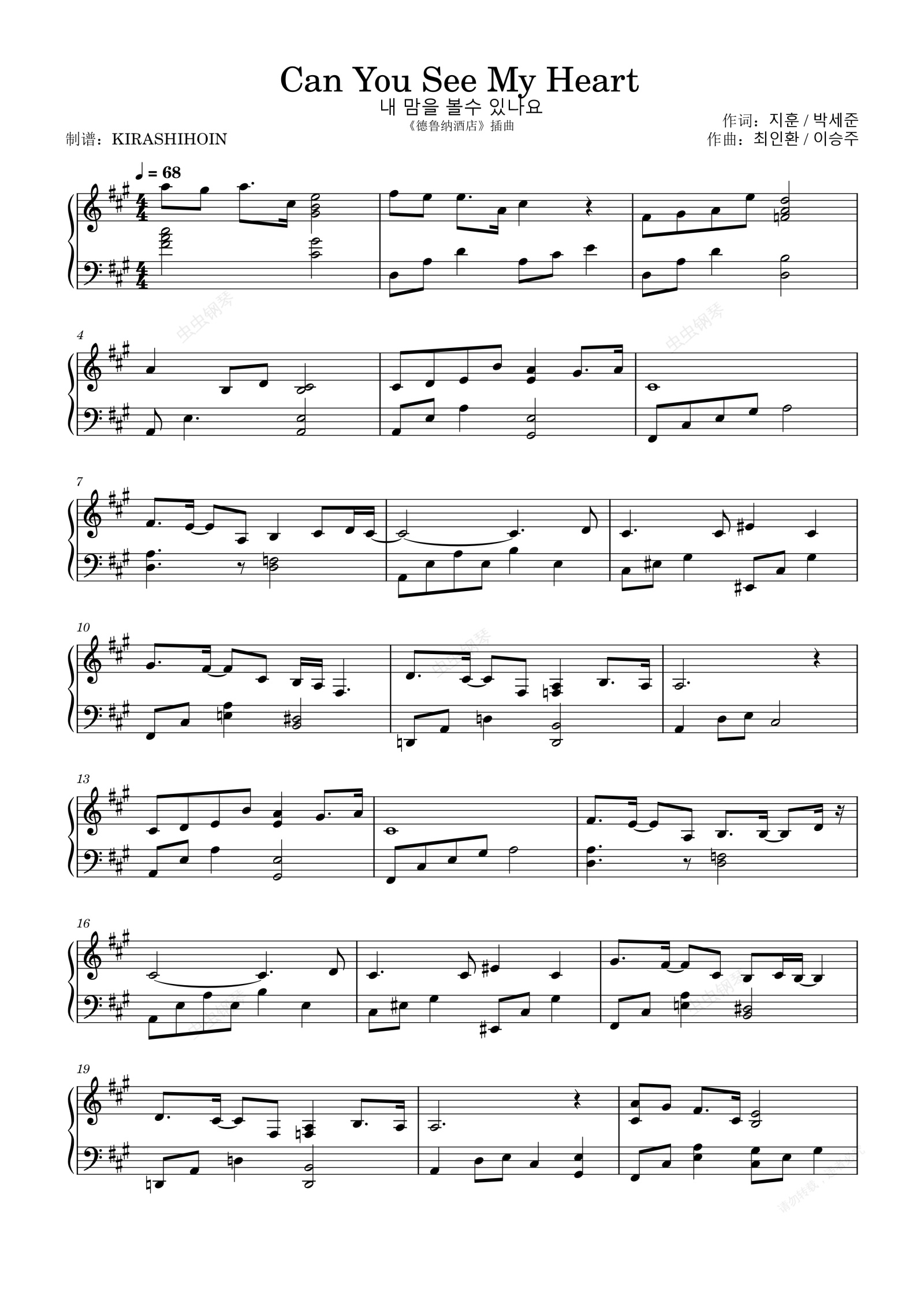 钢琴谱:Can You See My Heart/내 맘을 볼수 있나요(《德鲁纳酒店》插曲)- Heize