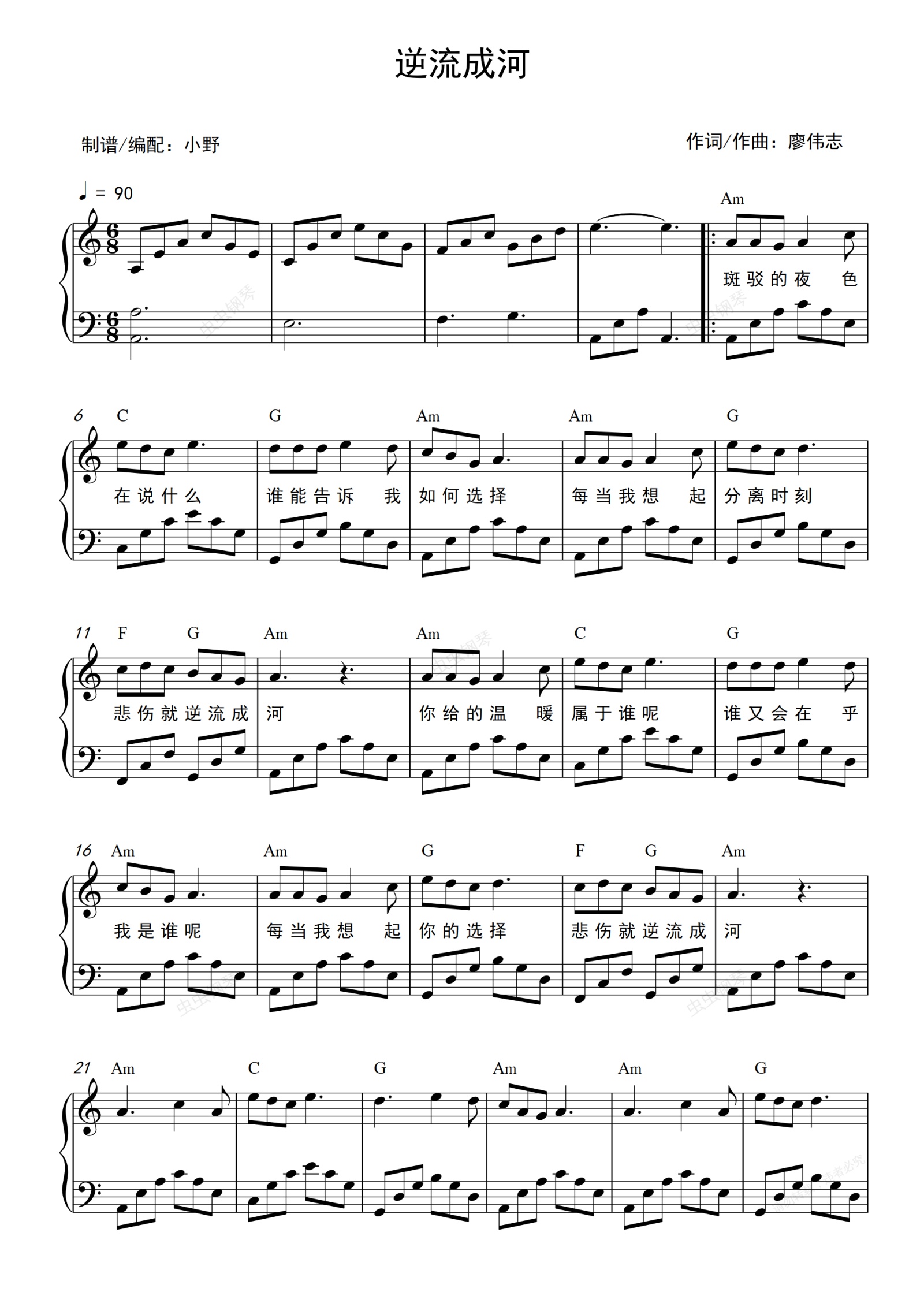 钢琴谱:逆流成河