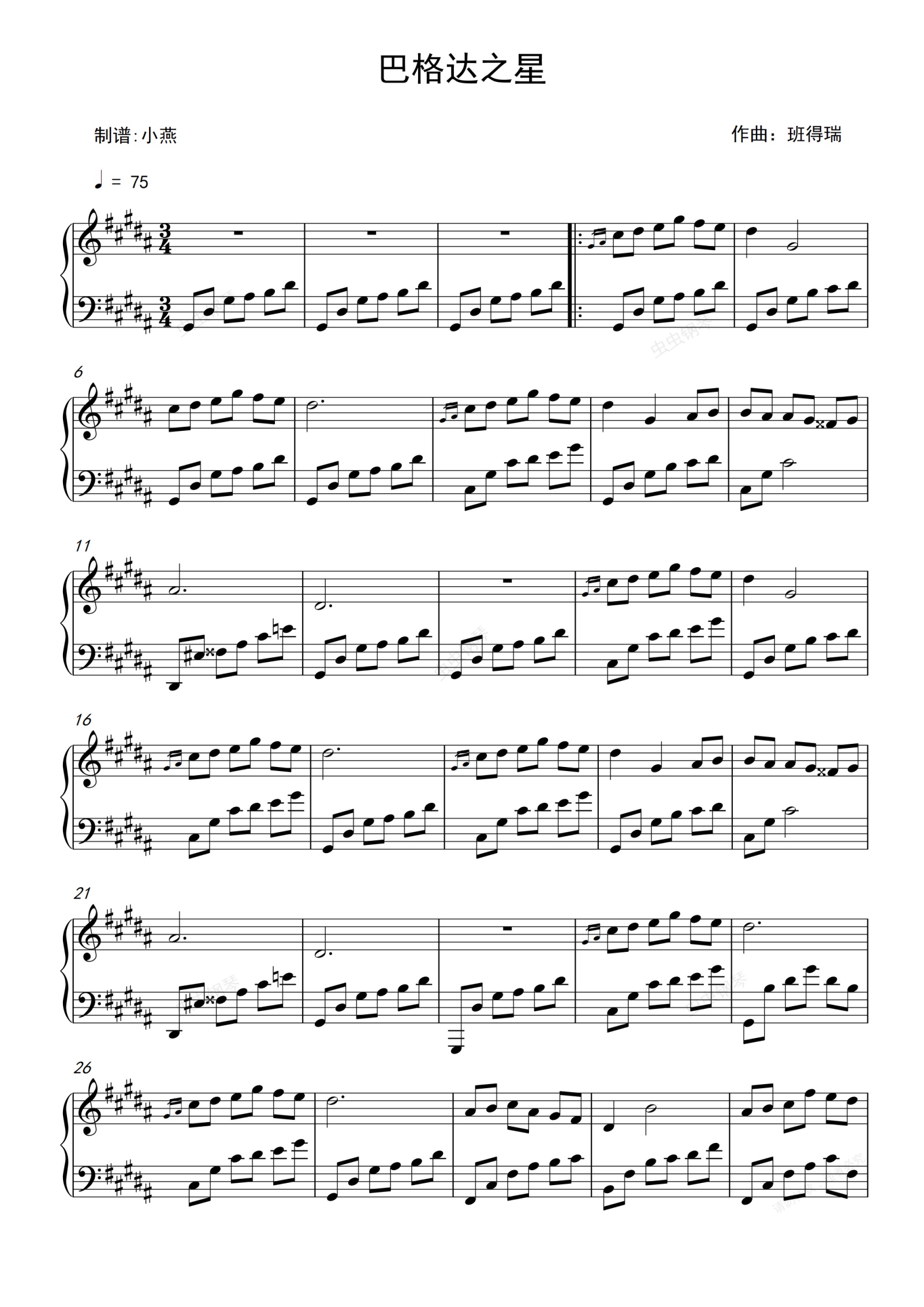 钢琴谱:巴格达之星
