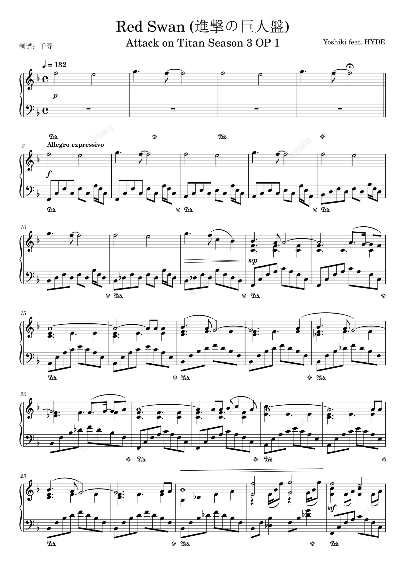 钢琴谱:Red Swan (進撃の巨人盤)-《进击的巨人 第三季》