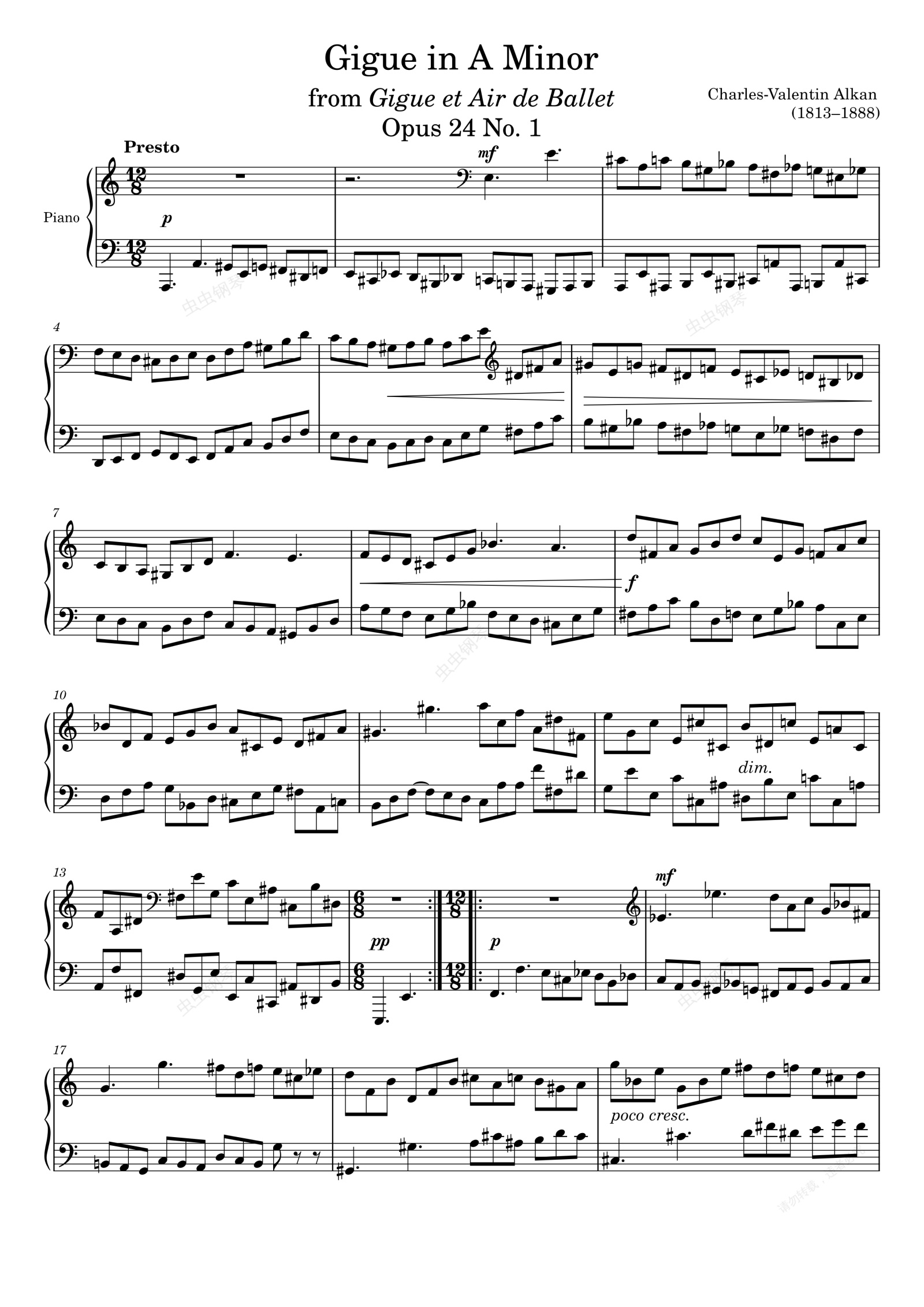 钢琴谱:Gigue Opus 24 No. 1 in A Minor