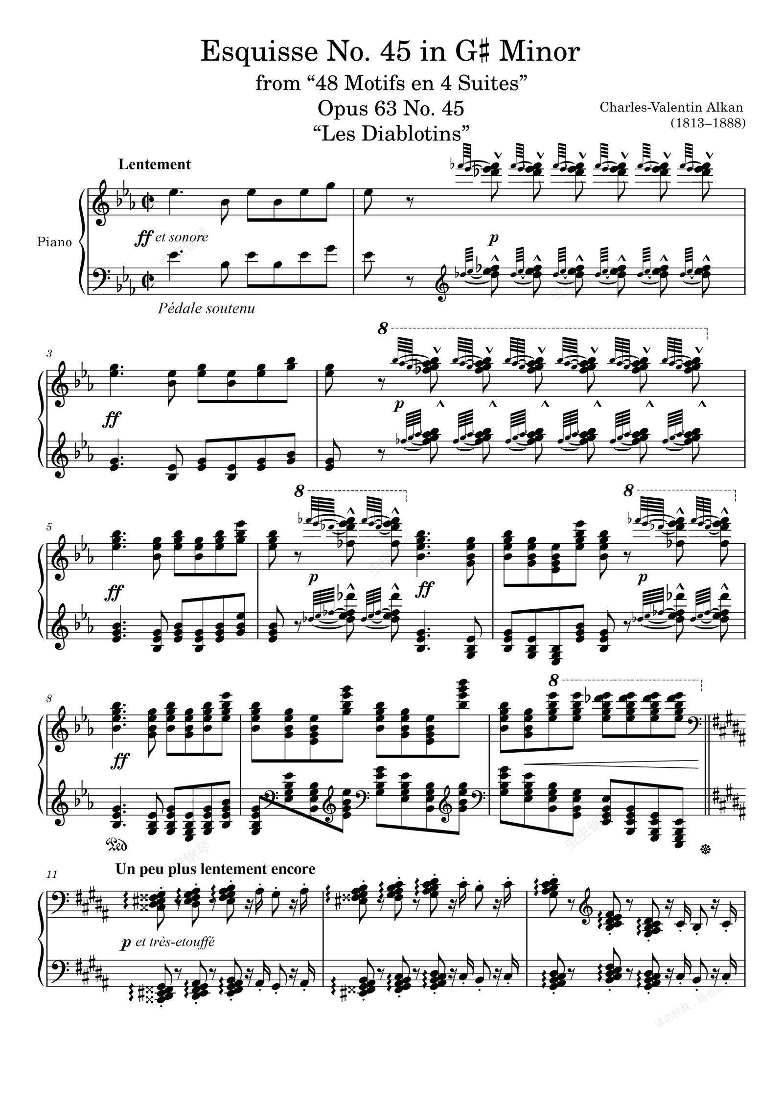 钢琴谱:Esquisse Opus 63 No. 45 in G♯ Minor