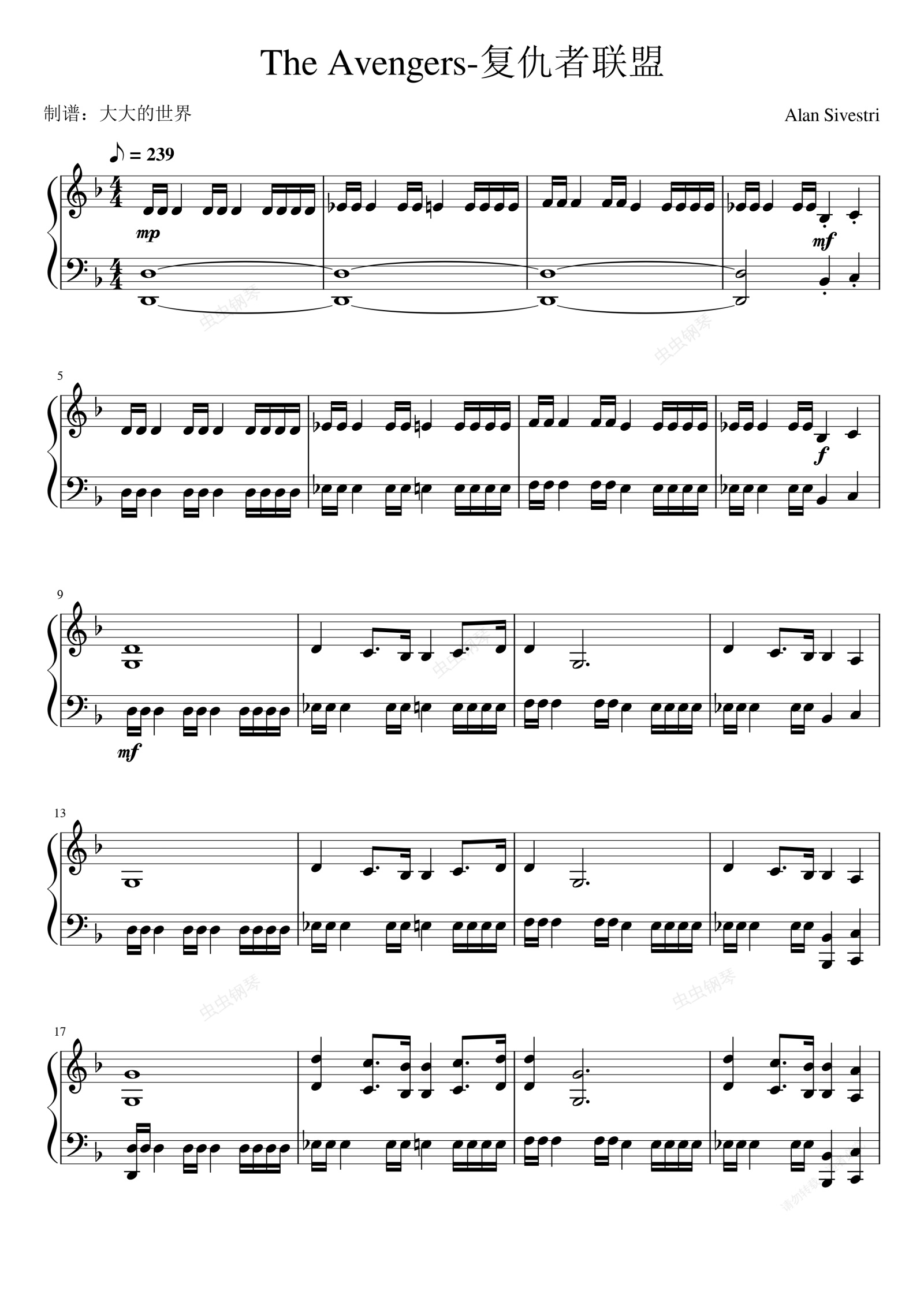 钢琴谱:The Avengers-复仇者联盟(钢琴独奏版)