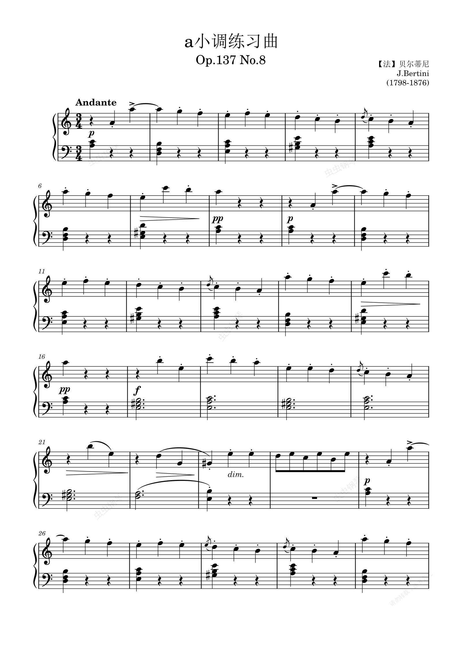 钢琴谱:a小调练习曲 Op.137 No.8,贝尔蒂尼