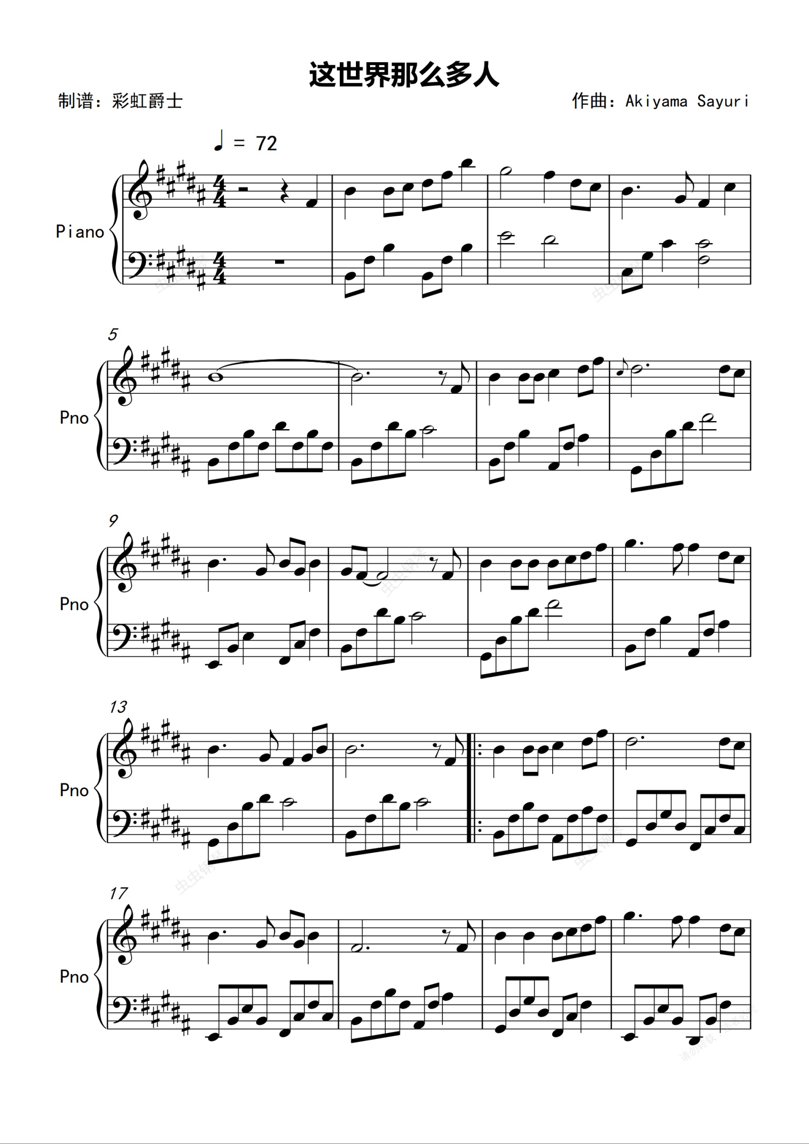 钢琴谱:这世界那么多人-简单版-莫文蔚