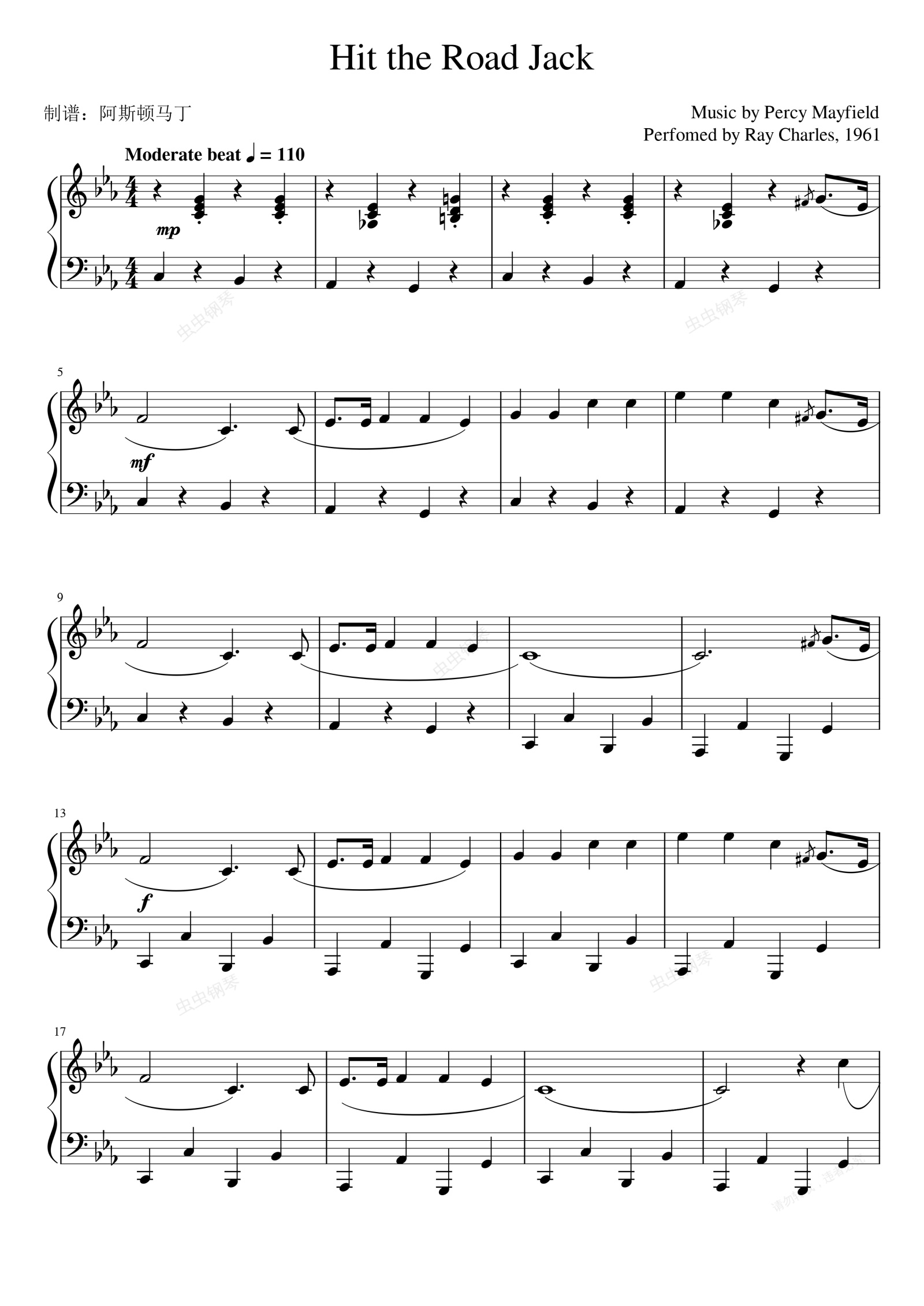 钢琴谱:Hit the Road Jack(钢琴谱)