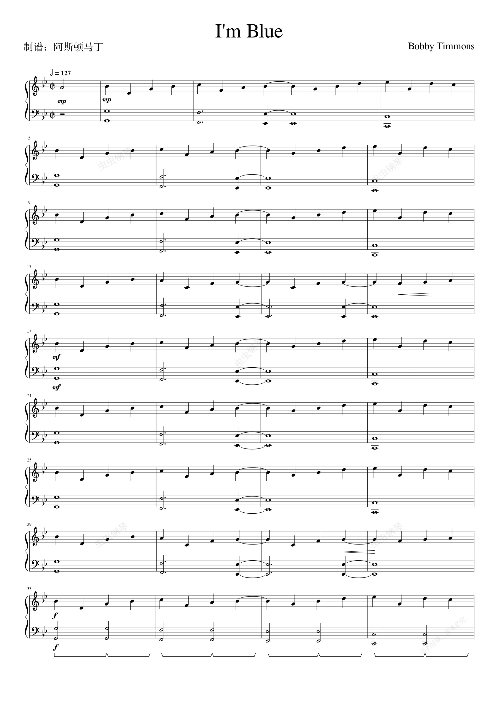 钢琴谱:I'm Blue(钢琴独奏版)