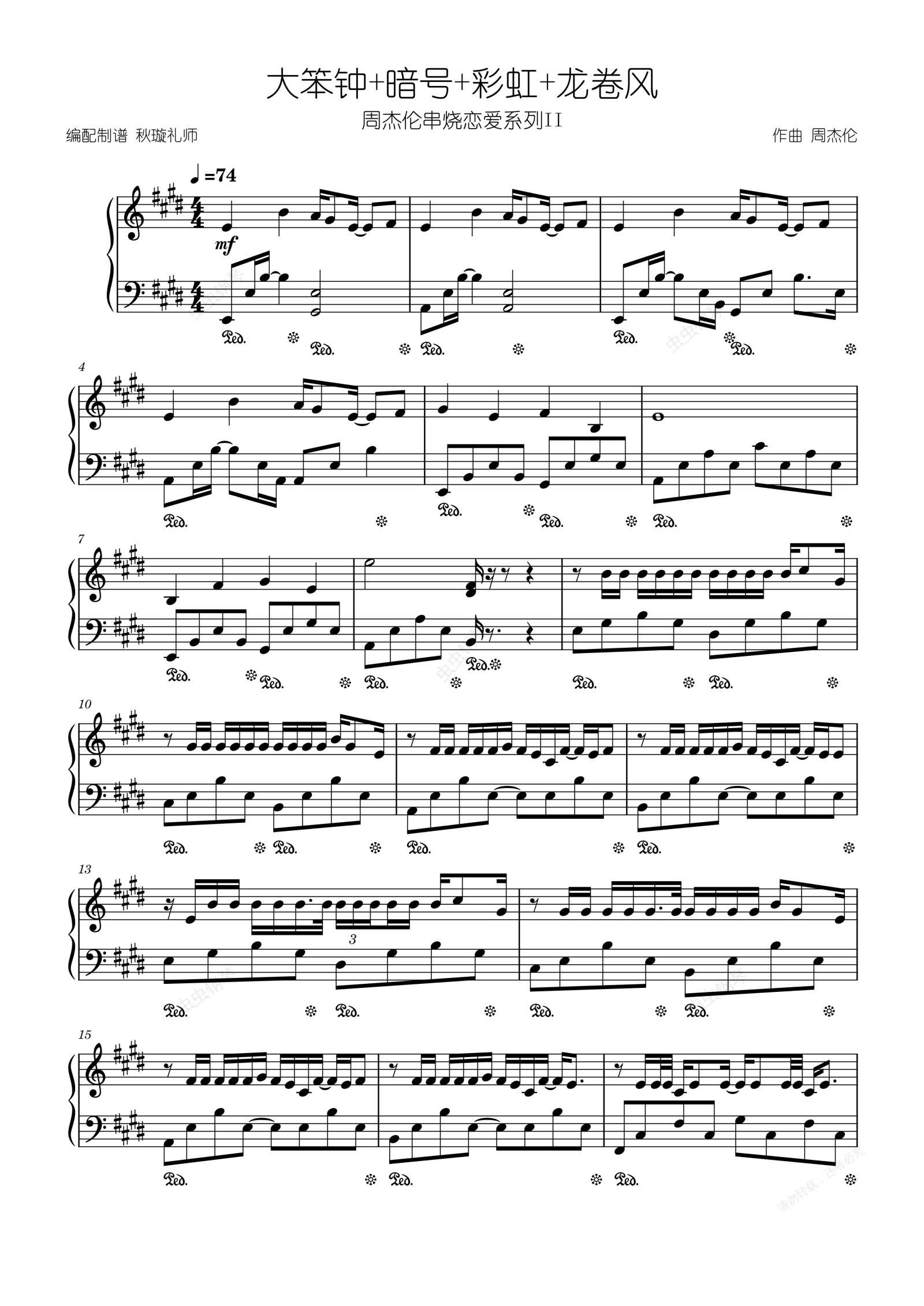 钢琴谱:大笨钟+暗号+彩虹+龙卷风—周杰伦[杰迷萌新级]