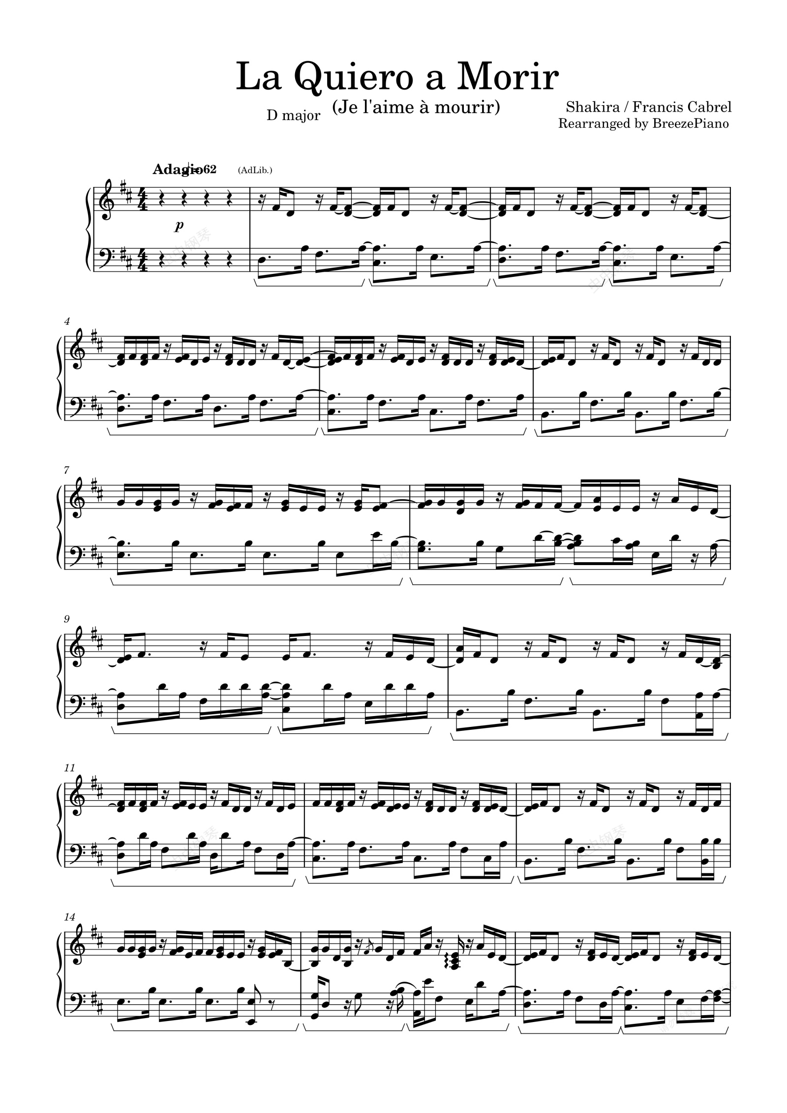 钢琴谱:La Quiero a Morir-Francis Cabrel/Alma Ritano
