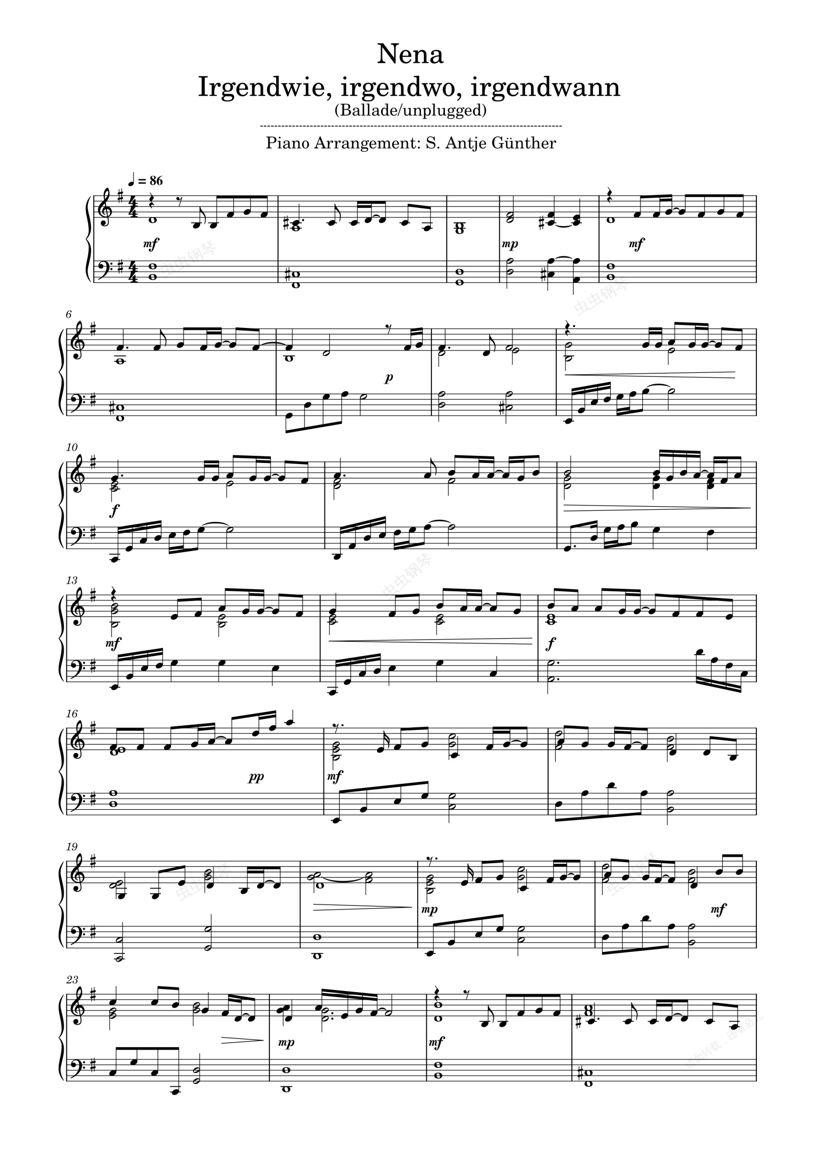 钢琴谱:Irgendwie, Irgendwo, Irgendwann-Nena