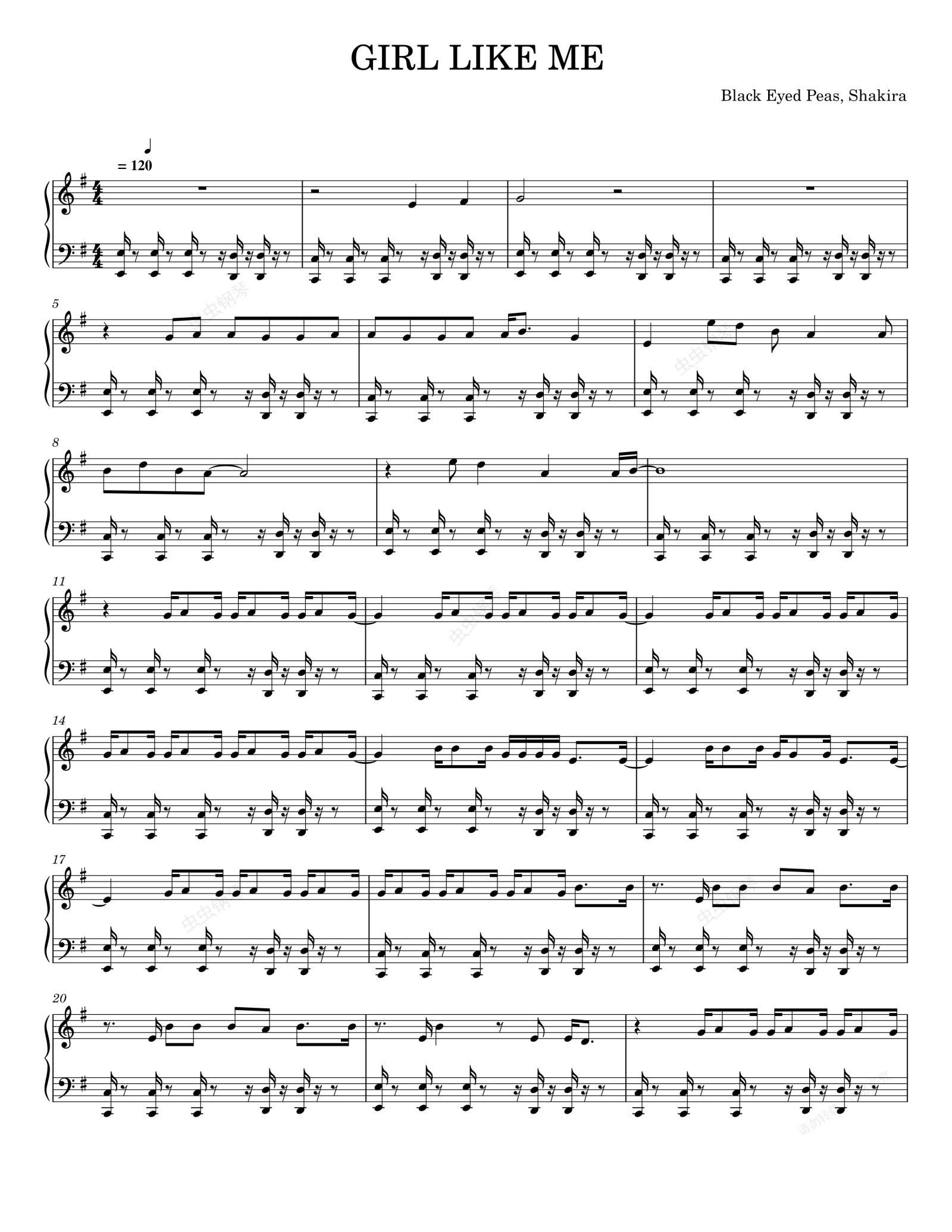 钢琴谱:GIRL LIKE ME-Black Eyed Peas / Shakira