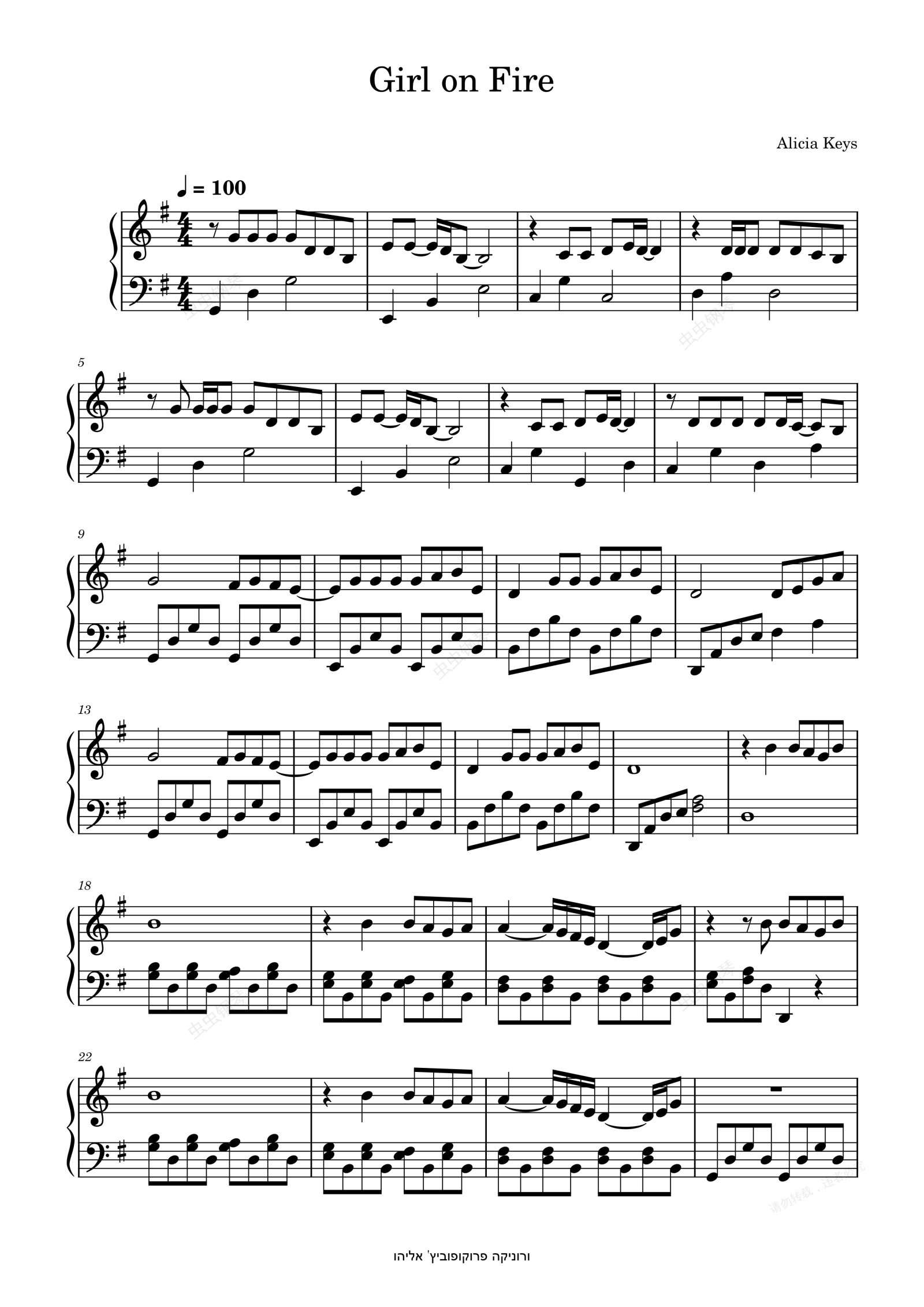 钢琴谱:Girl on Fire-Alicia Keys