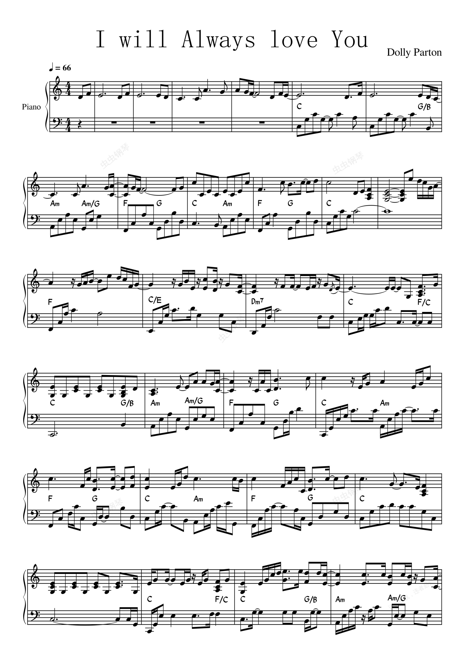 钢琴谱:I will Always love You-Dolly Parton