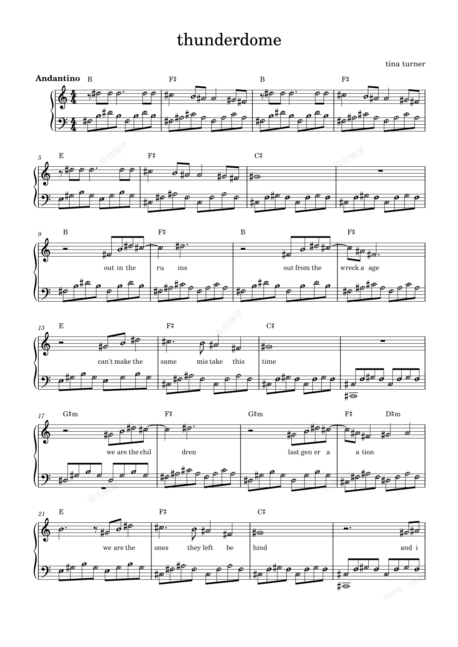 钢琴谱:Thunderdome-Tina Turner / Maurice Jarre