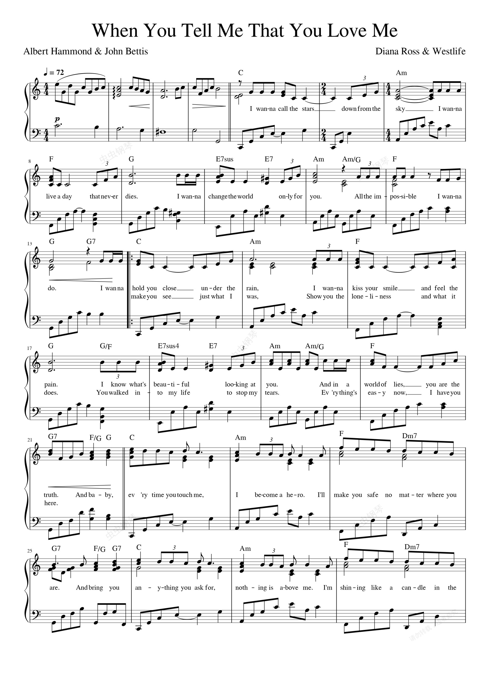 钢琴谱:When You Tell Me That You Love Me-Westlife/Diana Ross