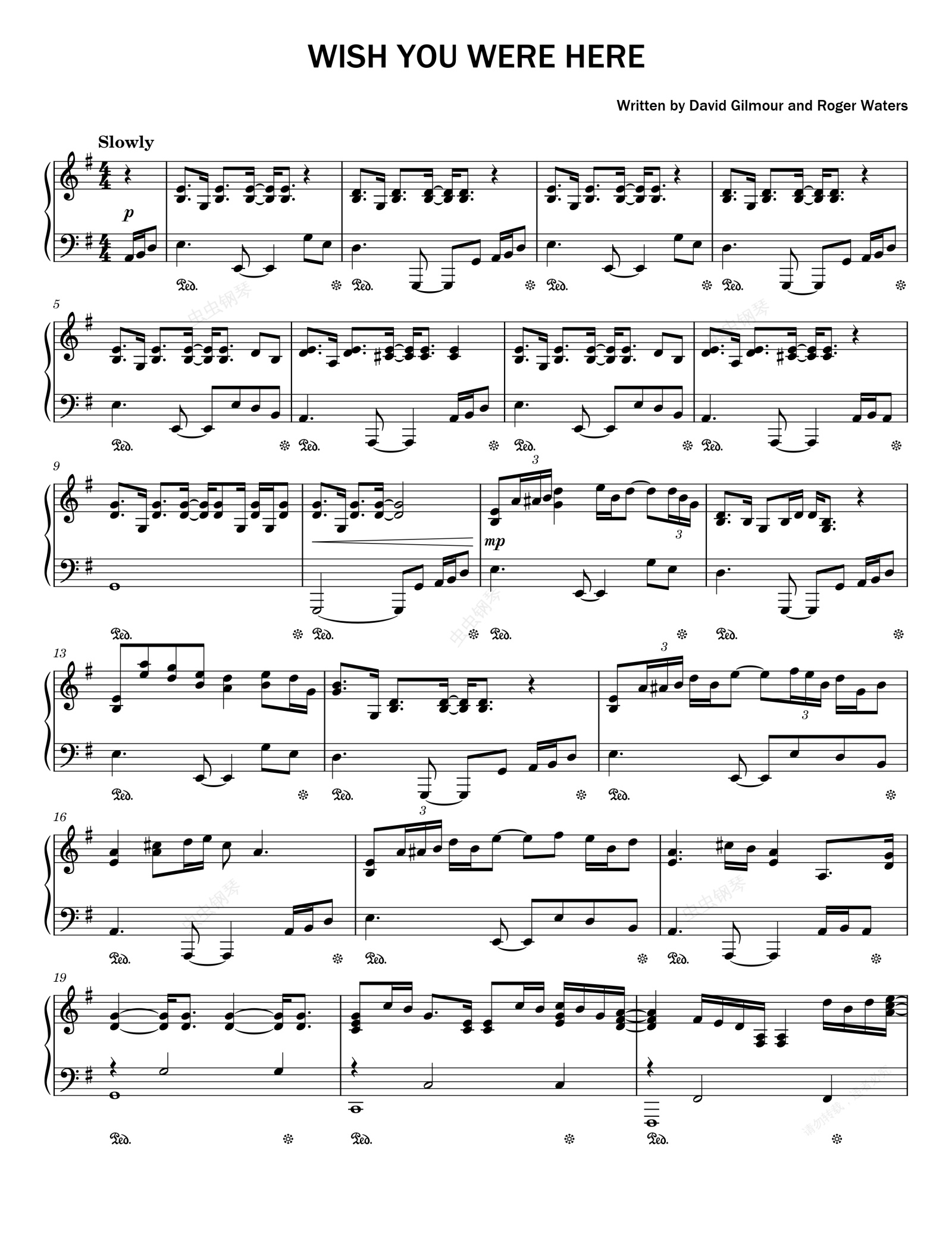 钢琴谱:WISH YOU WERE HERE-Pink Floyd