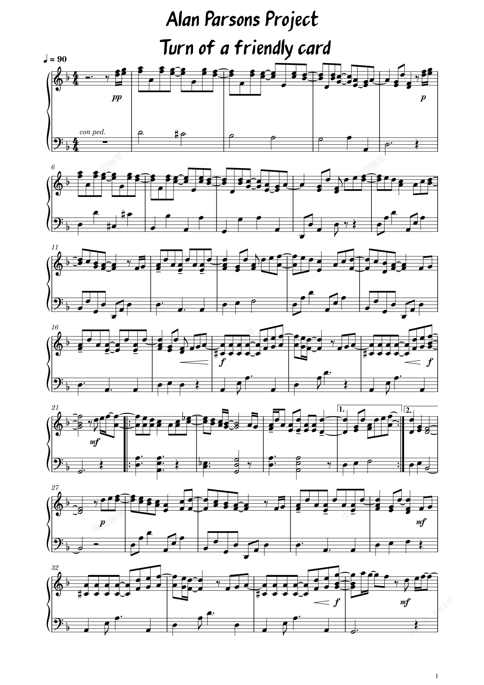 钢琴谱:Alan Parsons Project-The Turn Of A Friendly Card