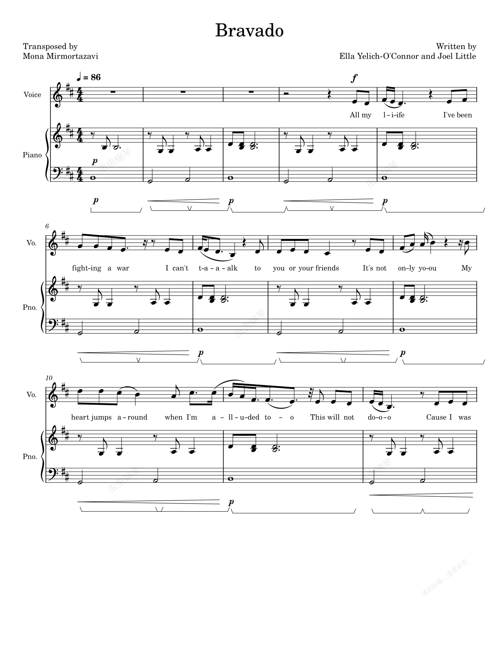 钢琴谱:Bravado-Lorde