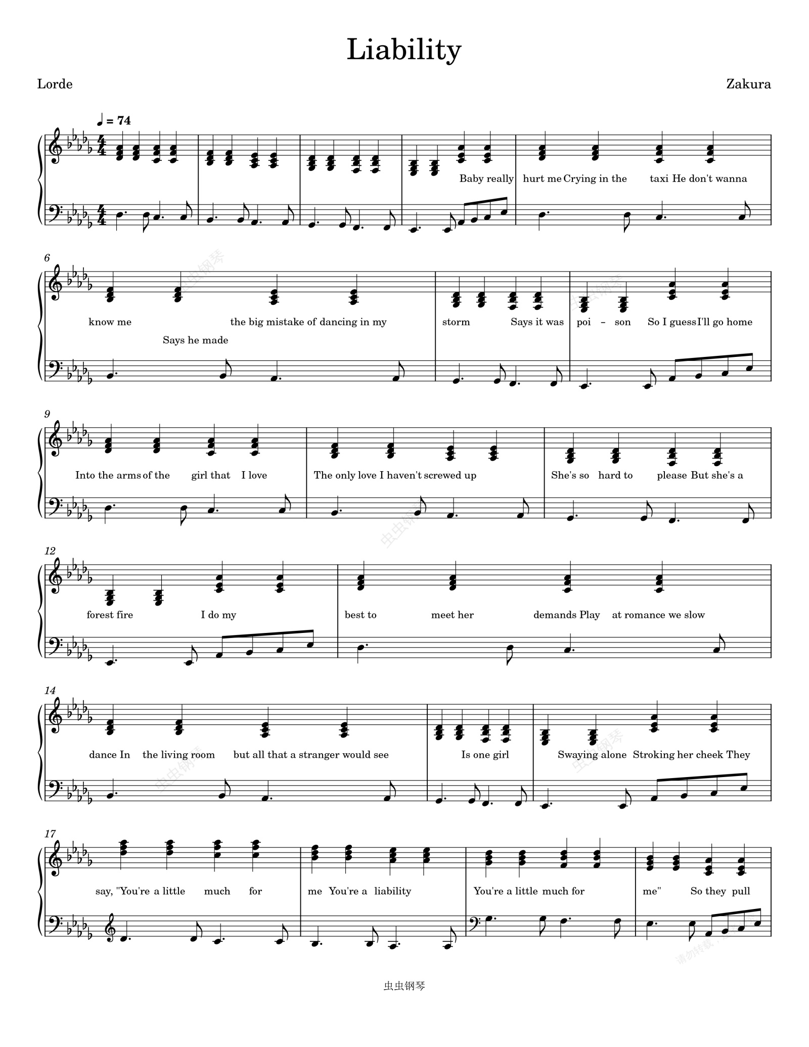 钢琴谱:Lorde-Liability