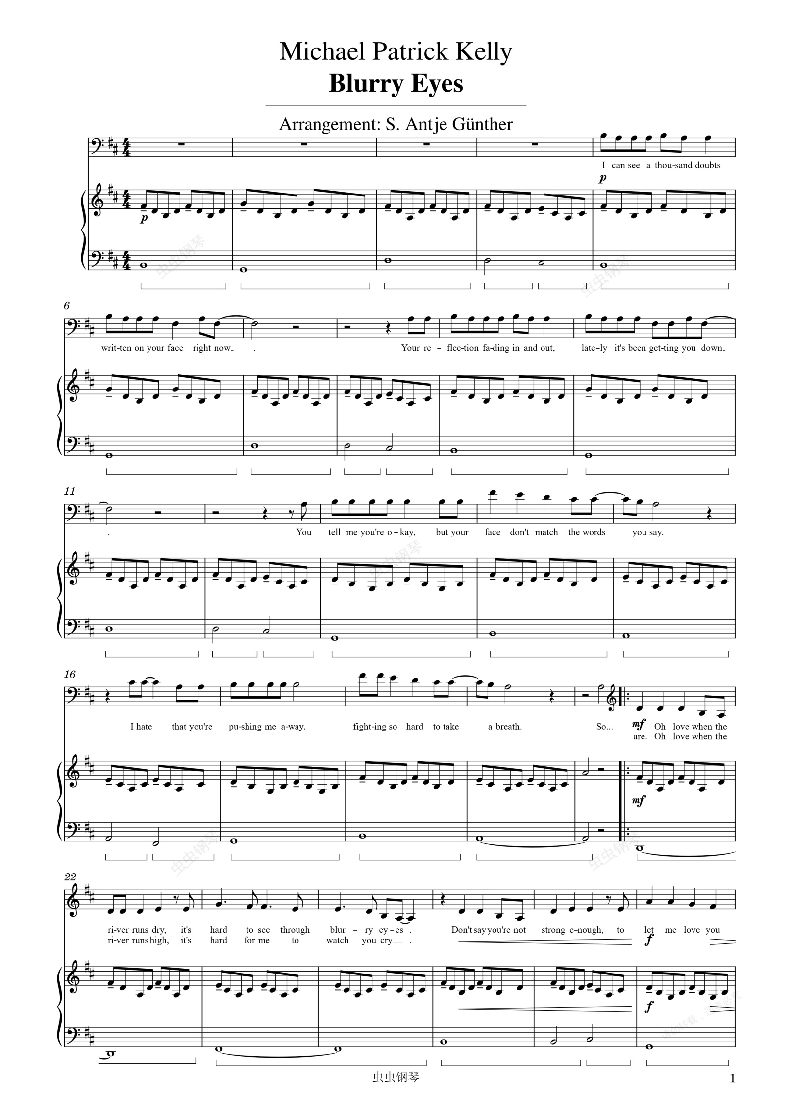 钢琴谱:Blurry Eyes-Michael Patrick Kelly