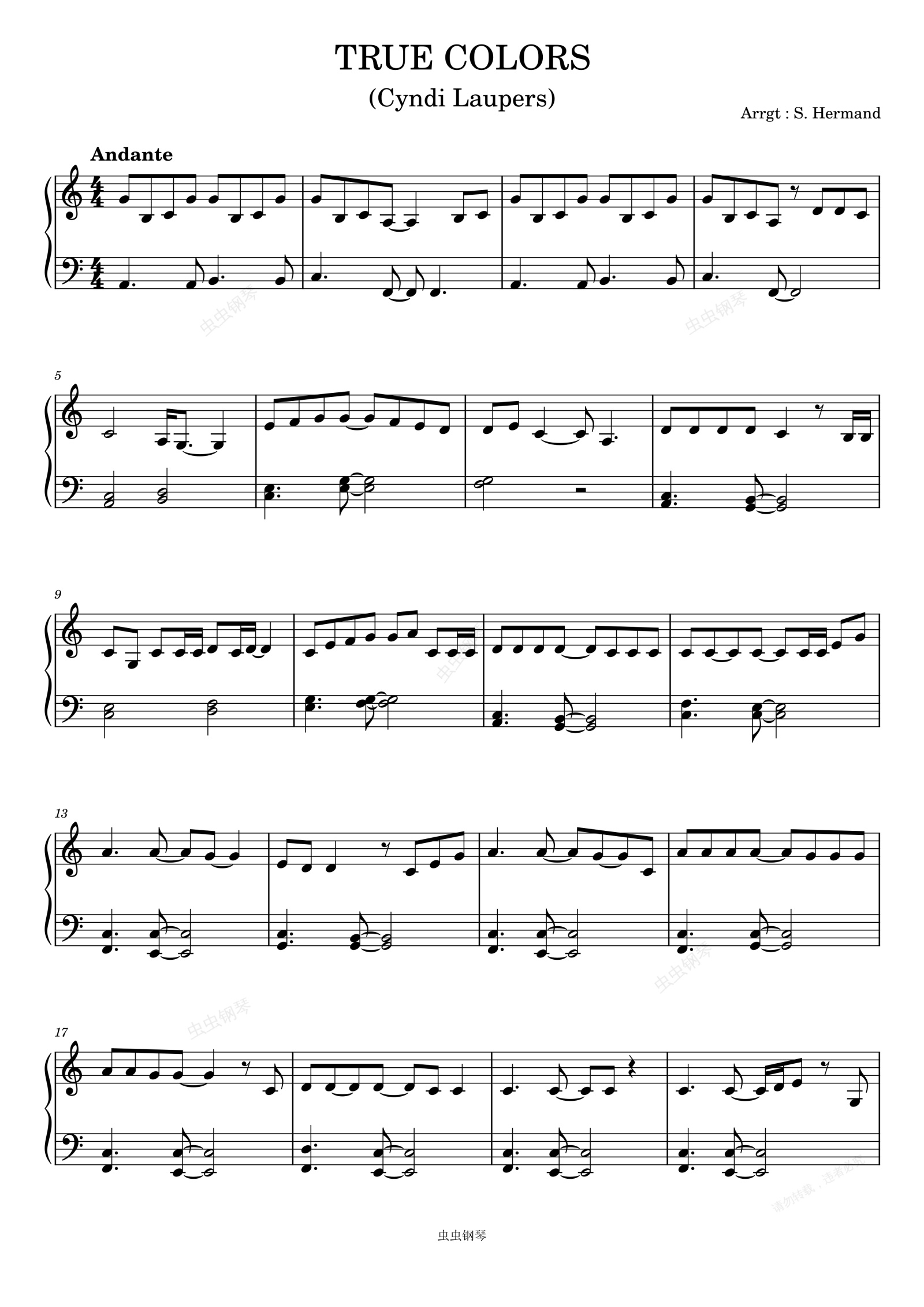 钢琴谱:TRUE COLORS-Cyndi Lauper