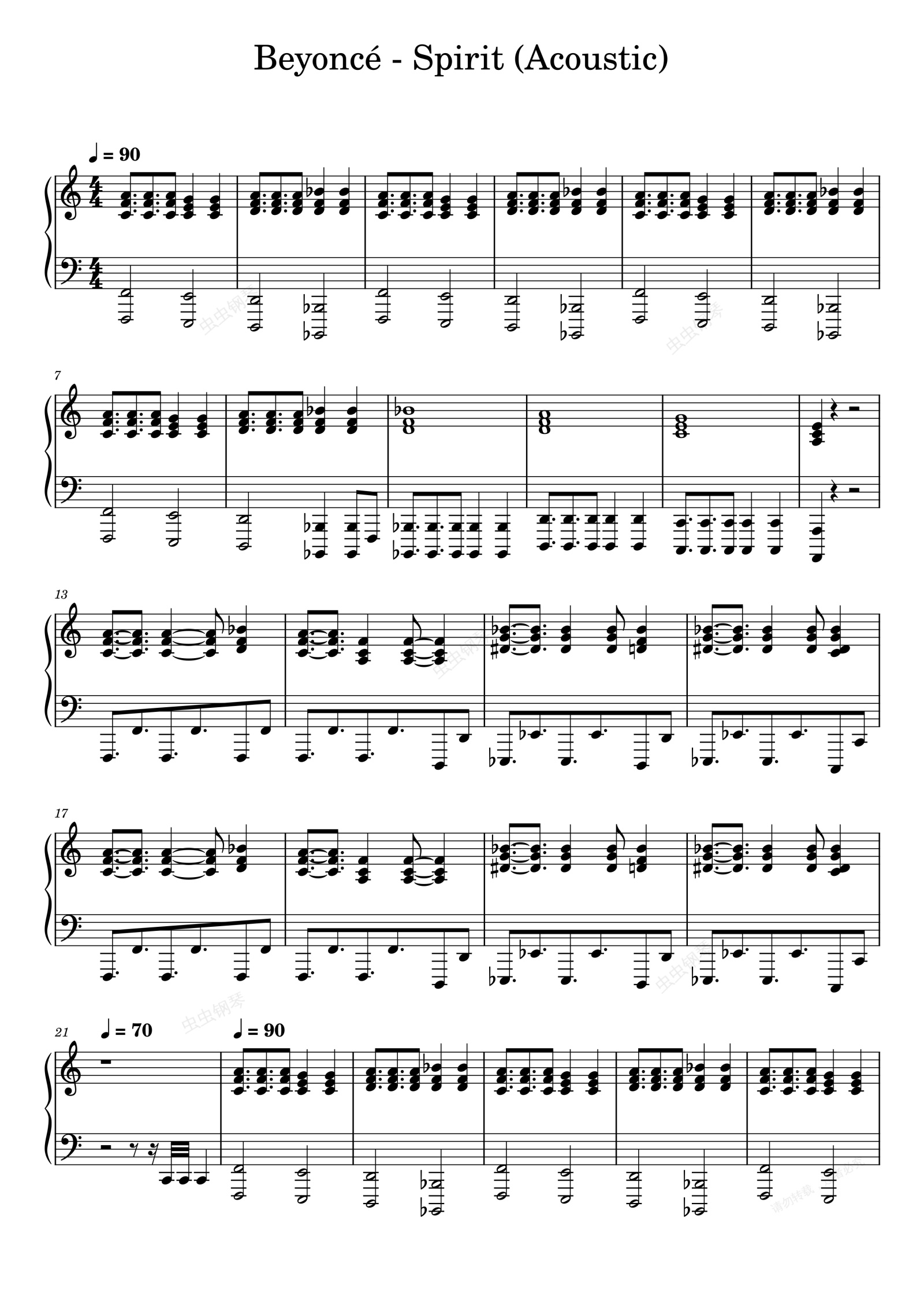 钢琴谱:Beyoncé - Spirit (Acoustic)