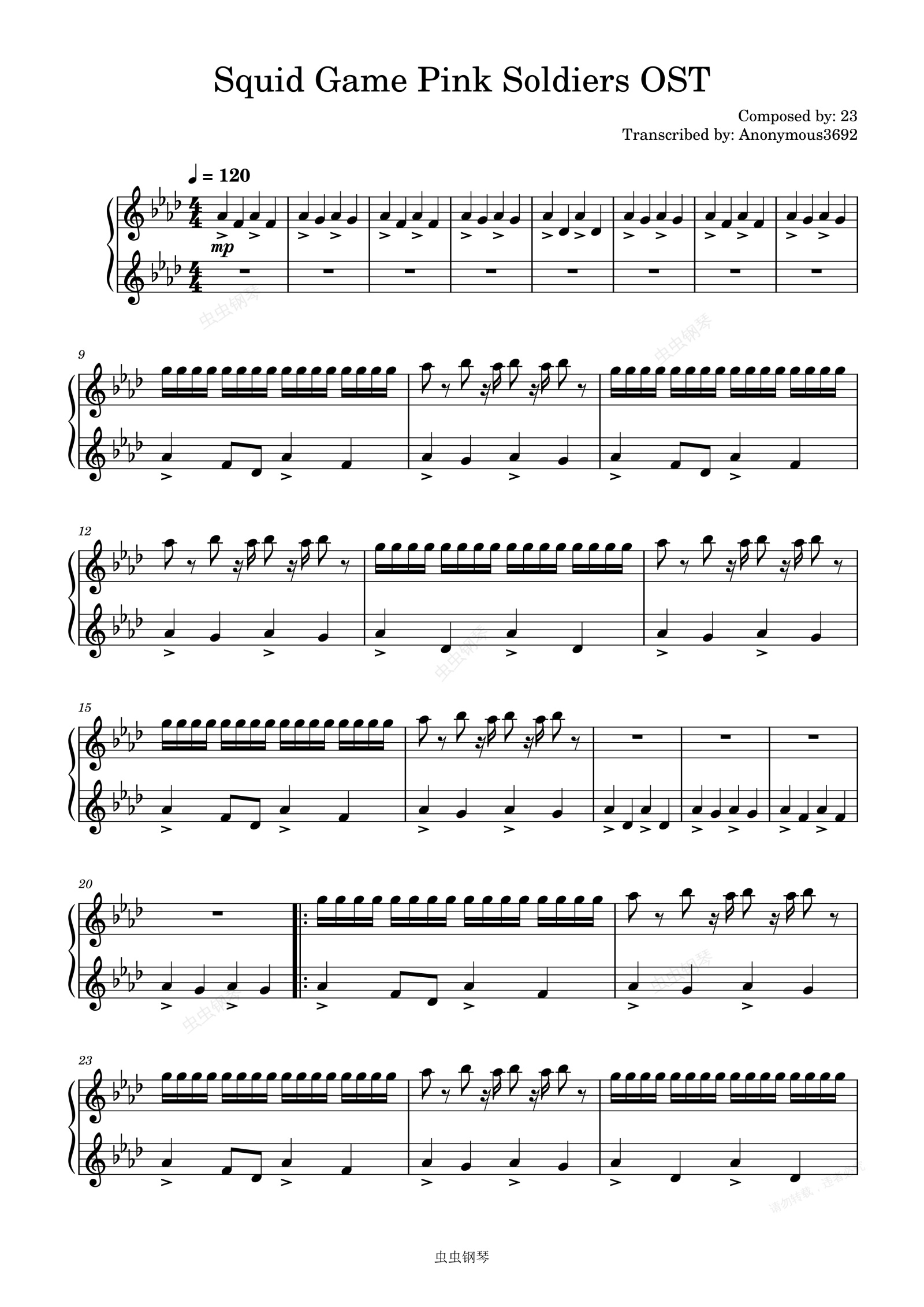 钢琴谱:鱿鱼游戏-Pink Soldiers
