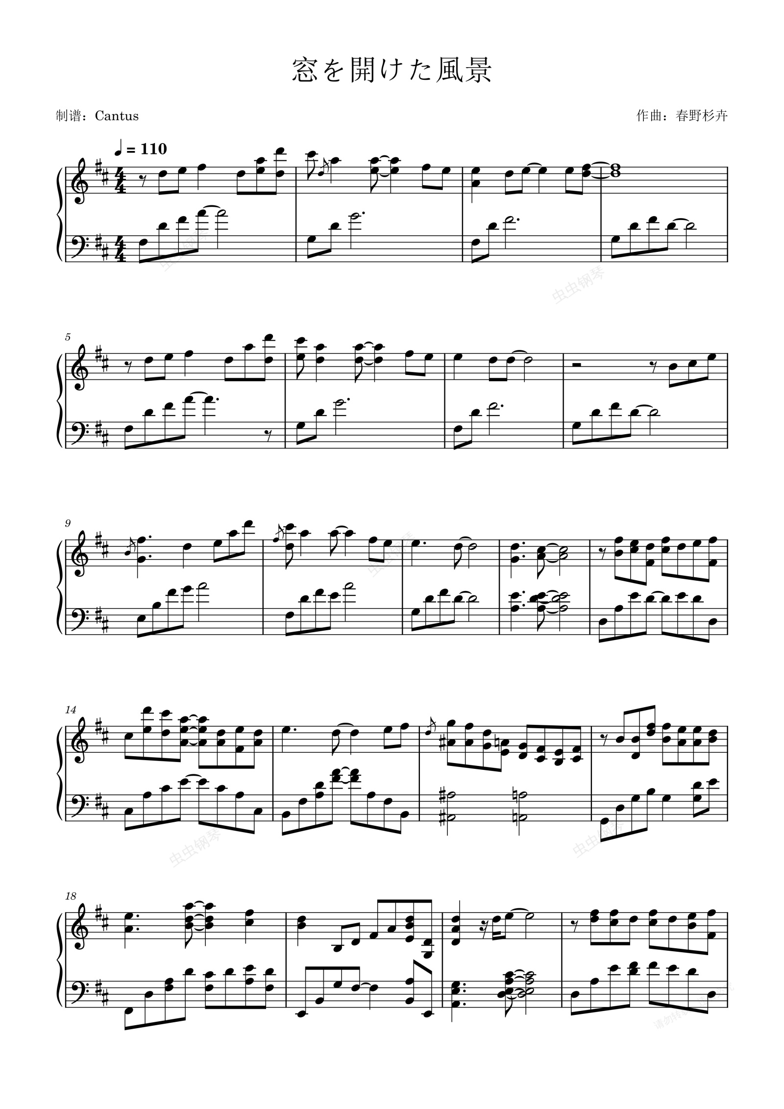 钢琴谱:窓を開けた風景/打开窗户外的风景-春野杉卉