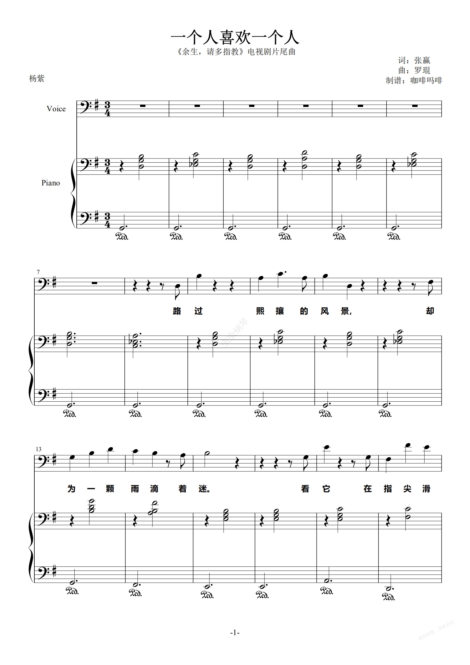 钢琴谱:一个人喜欢一个人-《余生,请多指教》片尾曲 钢琴弹唱谱