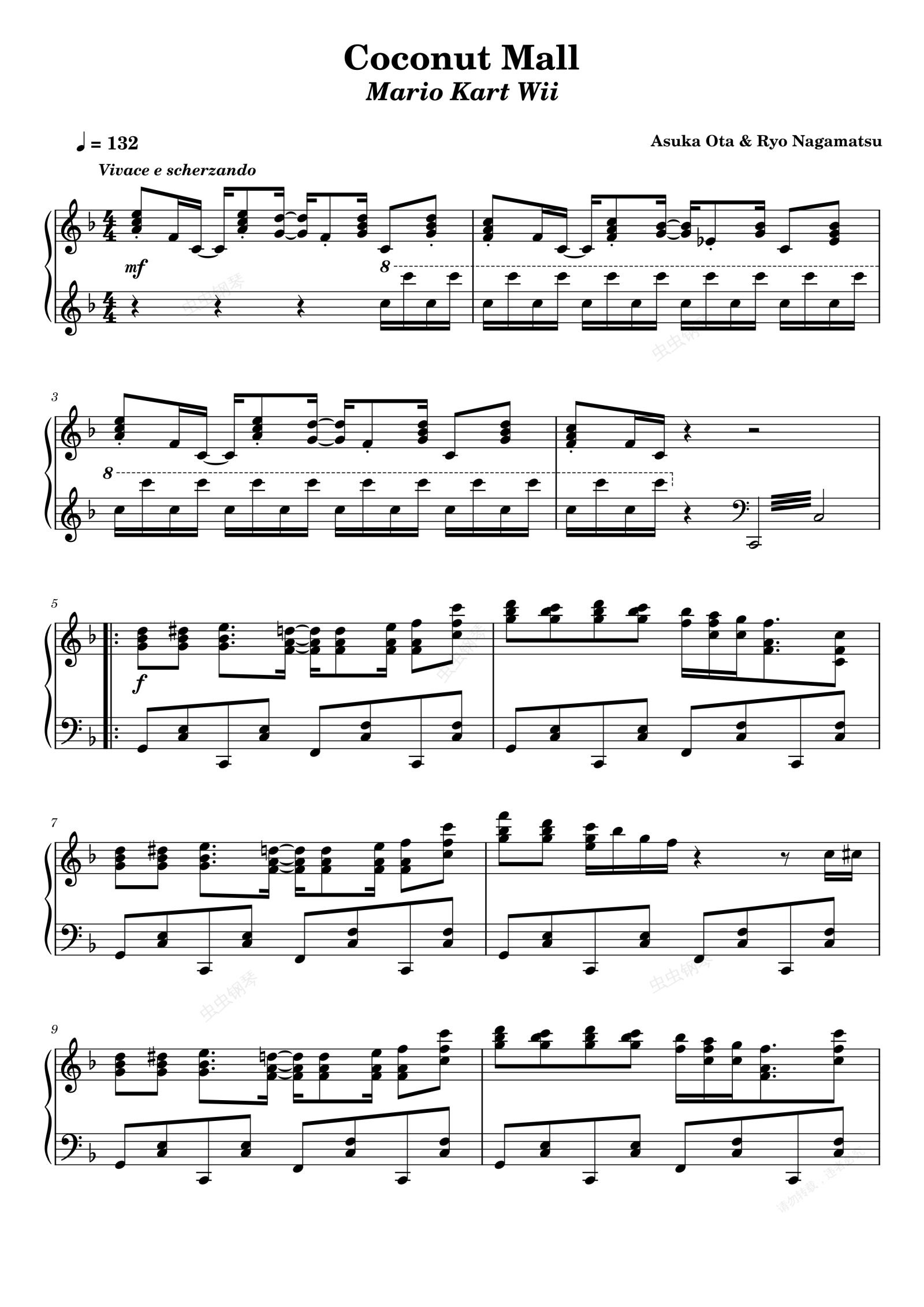 钢琴谱:Coconut Mall-Mario Kart Wii(钢琴谱)