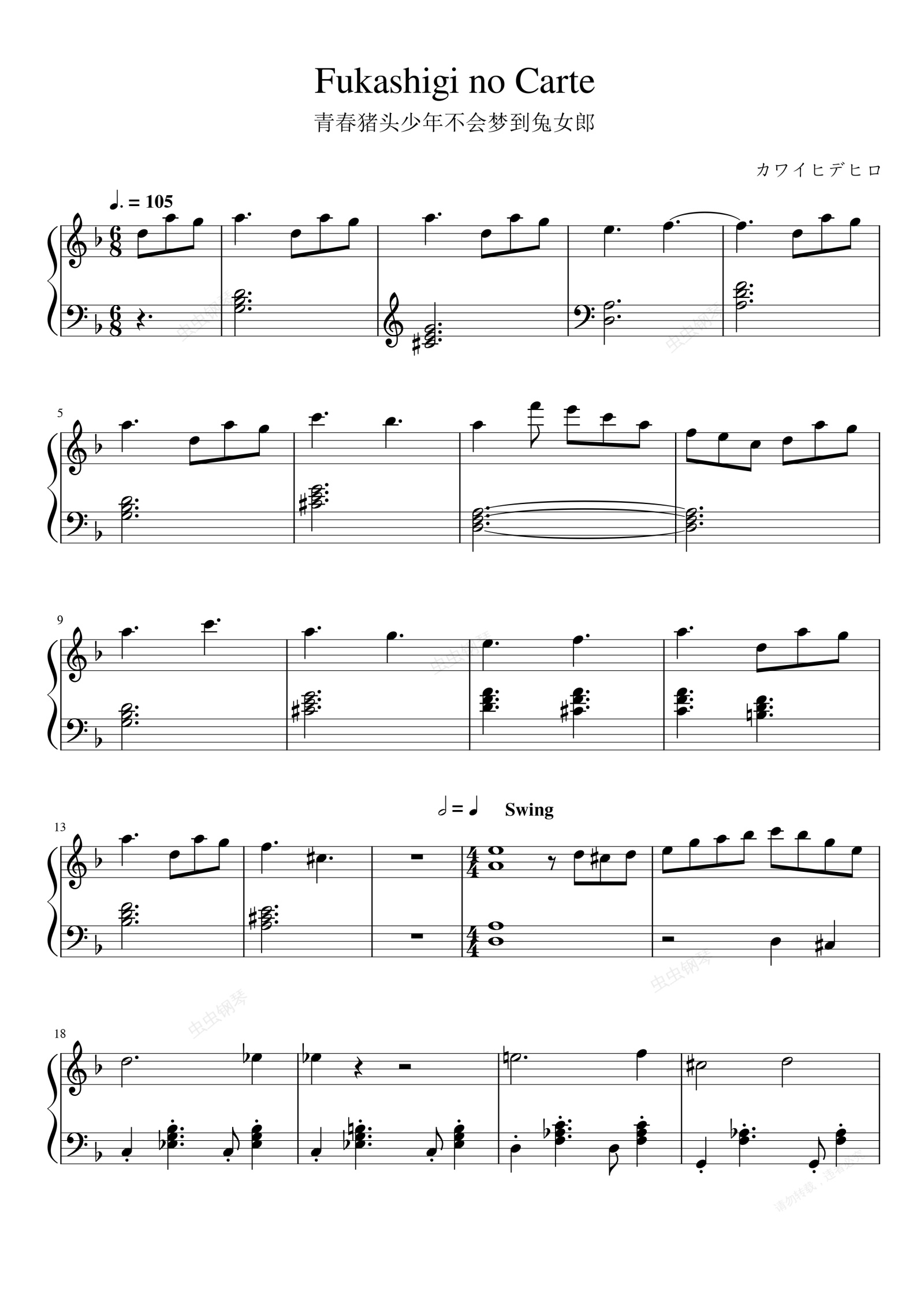 钢琴谱:不可思議のカルテ/Fukashigi no Carte-青春猪头少年不会梦到兔女郎