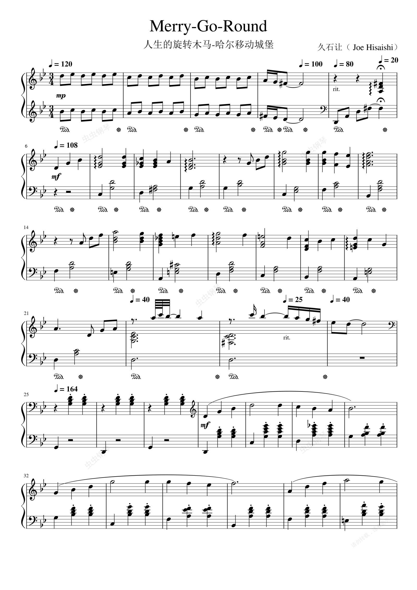 钢琴谱:Merry-Go-Round (人生的旋转木马-哈尔移动城堡)