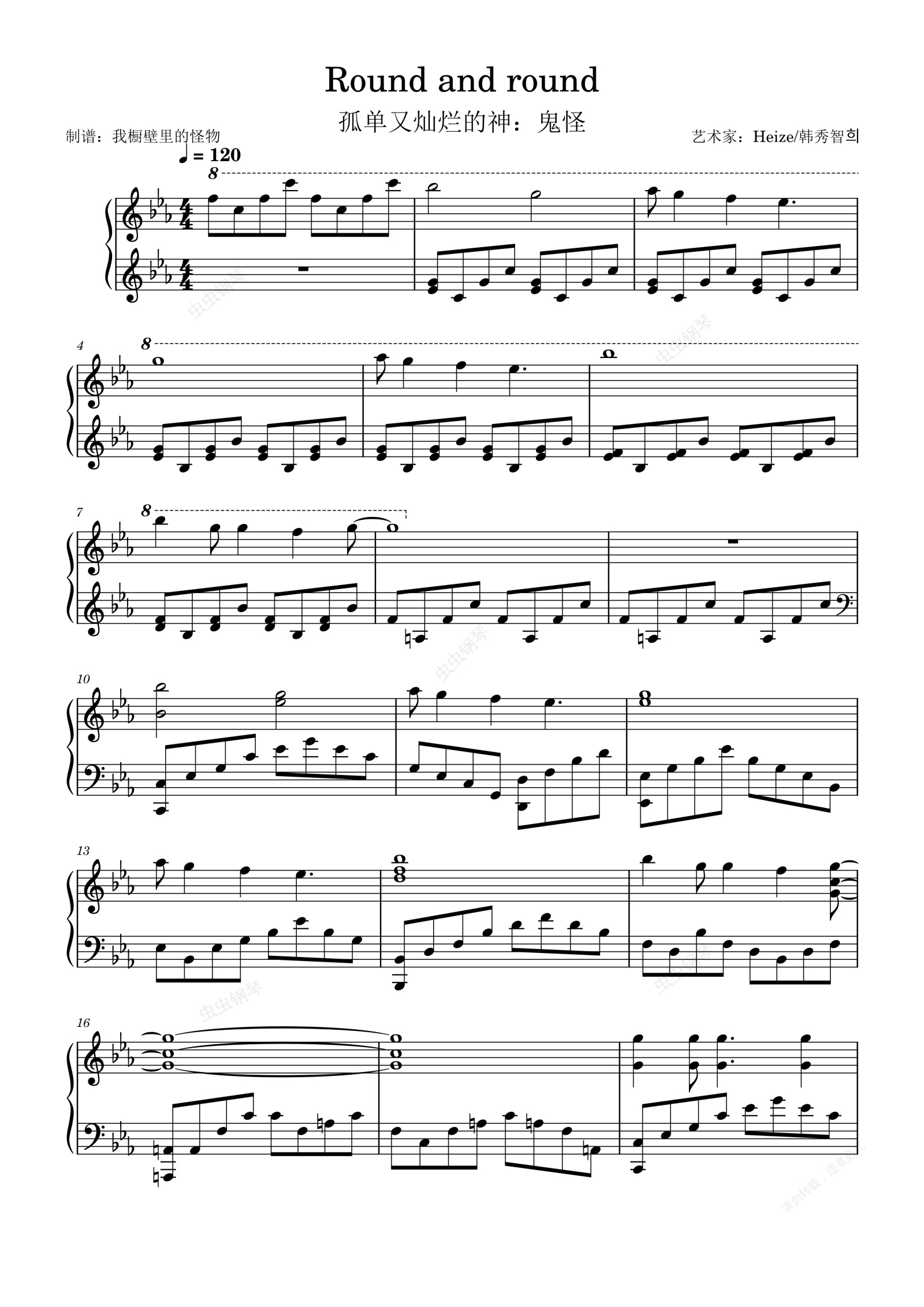 钢琴谱:高燃还原!Round and round【孤单又灿烂的神-鬼怪】OST