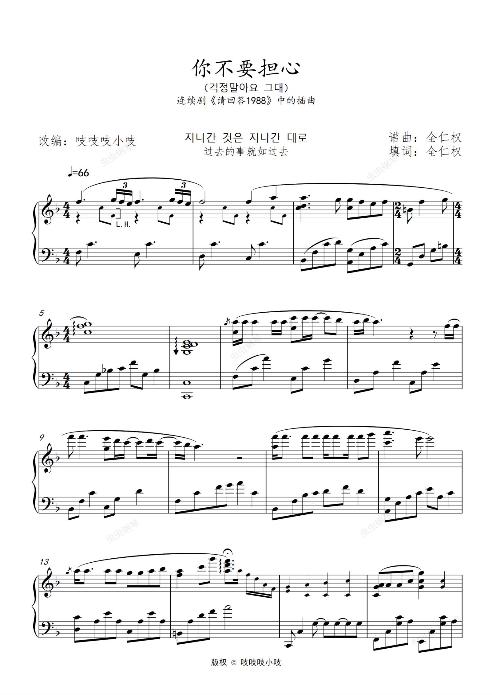 钢琴谱:你不要担心(《请回答1988》中的插曲)(걱정말아요 그대)