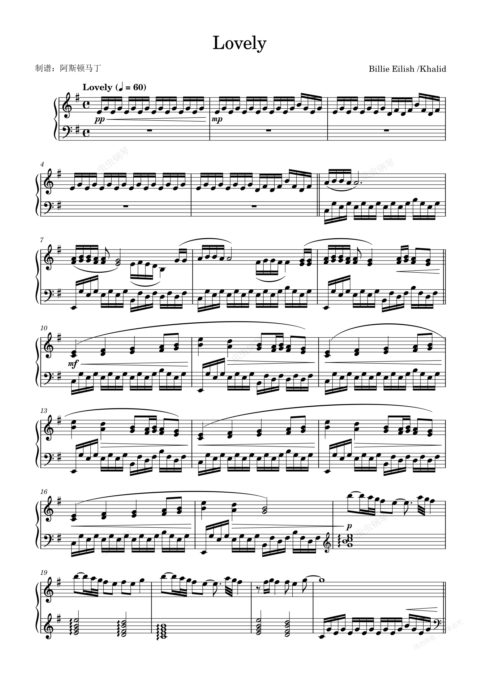 钢琴谱:Lovely钢琴谱-Billie Eilish /Khalid