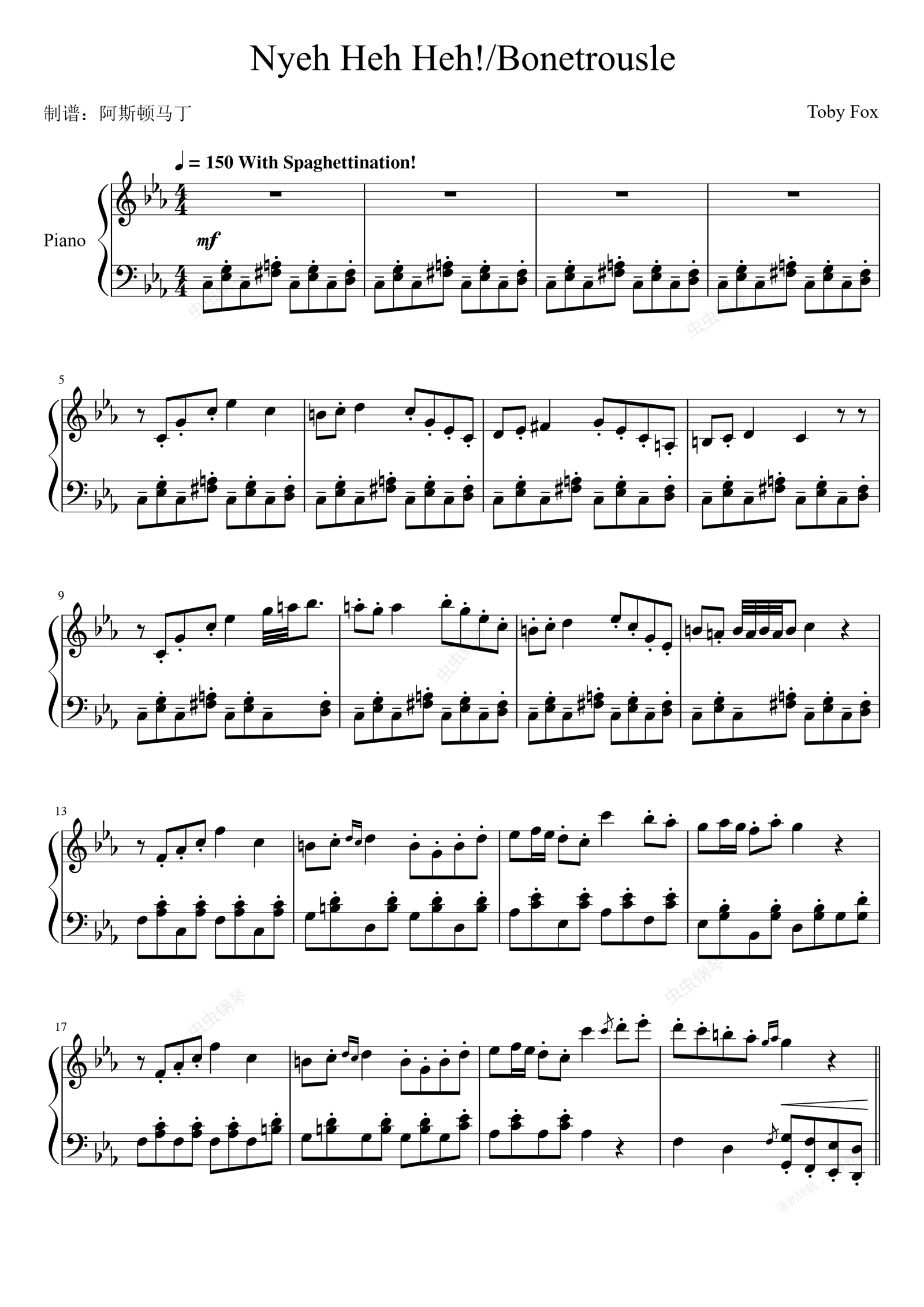 钢琴谱:Nyeh Heh Heh-Toby Fox
