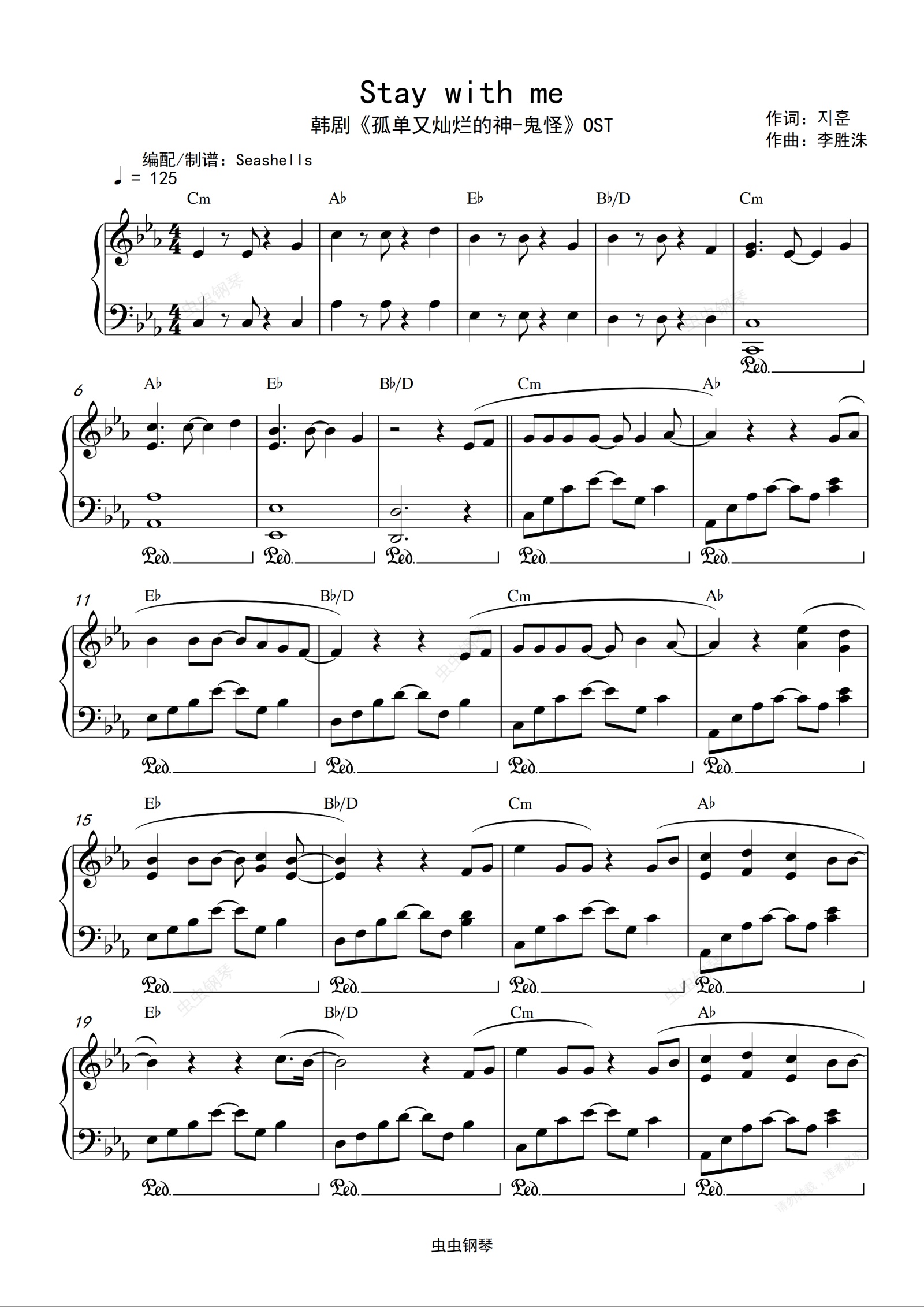 钢琴谱:《Stay With Me》 - 朴灿烈、Punch 鬼怪OST