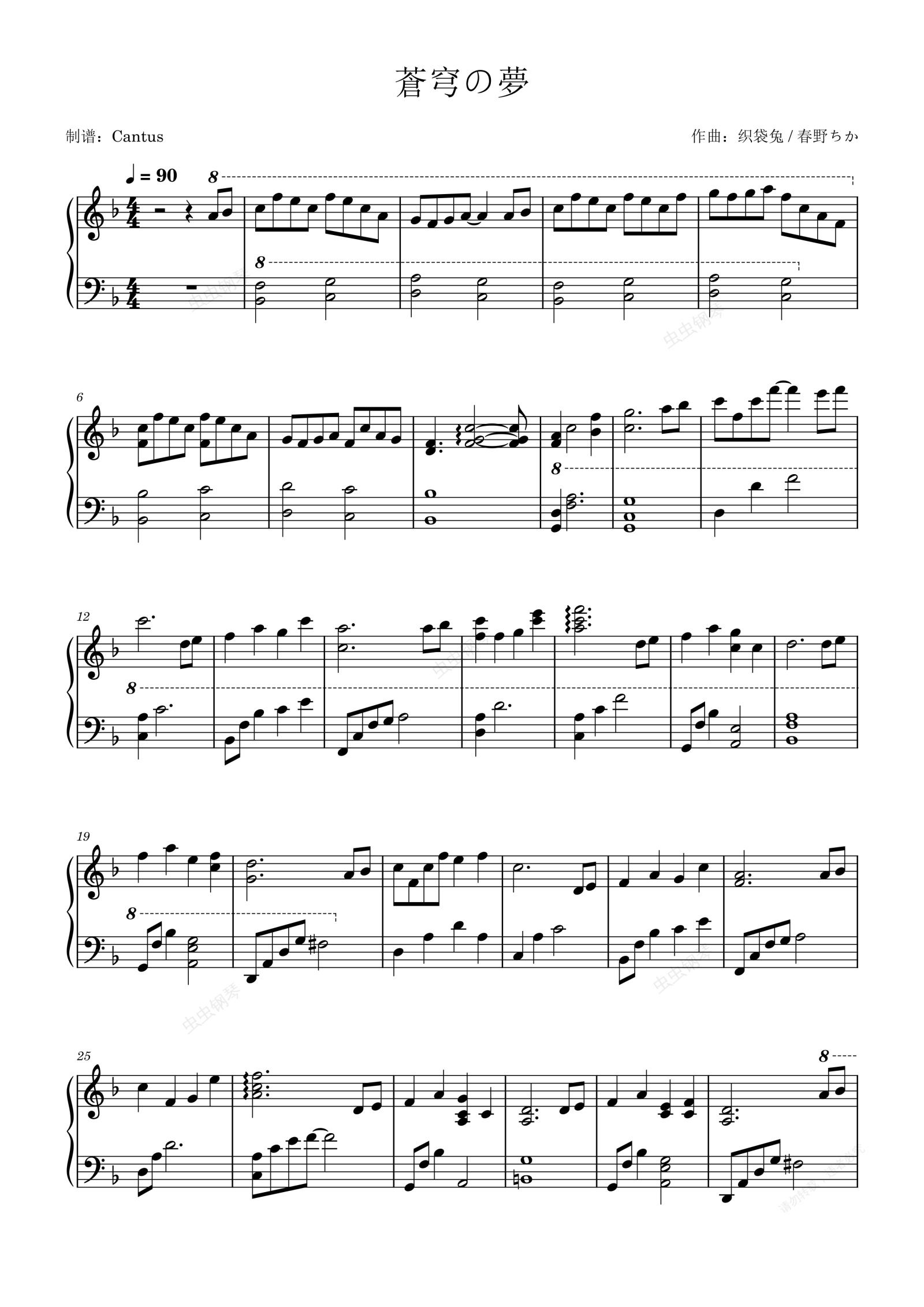 钢琴谱:蒼穹の夢/苍穹之梦-织袋兔 / 春野ちか