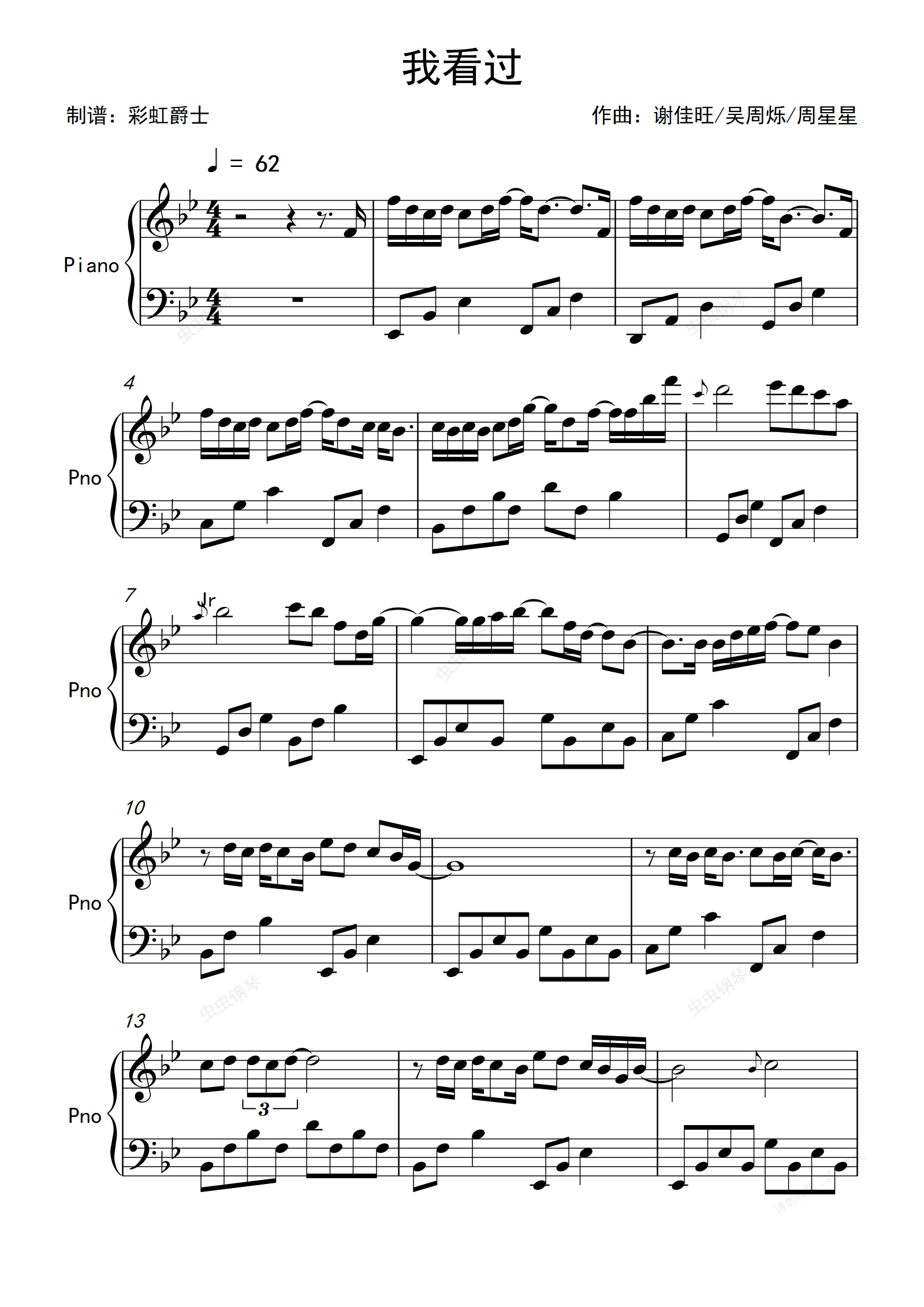 钢琴谱:我看过-简单版-我看过你说好一辈子 cici_